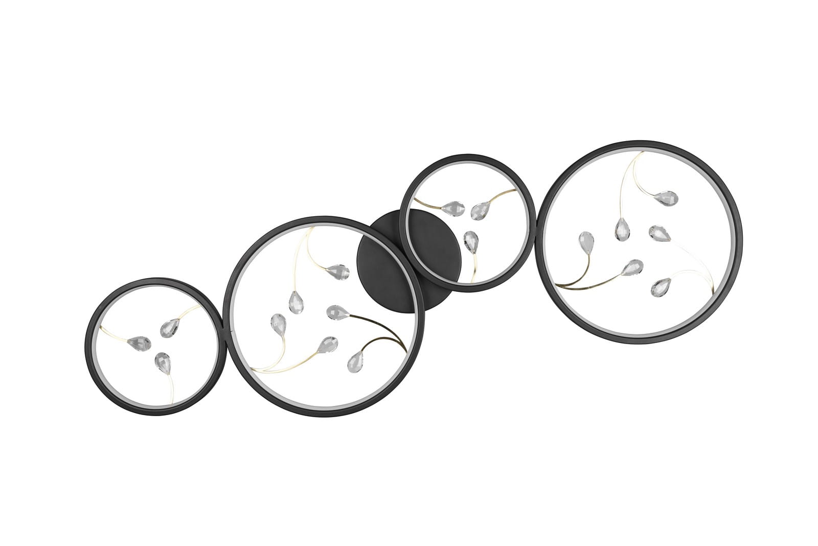Lampa sufitowa cztery okręgi ze szklanymi elementami dekoracyjnymi matowy czarny Trio Lighting 642110432 Groovy LED 37W 3000K
