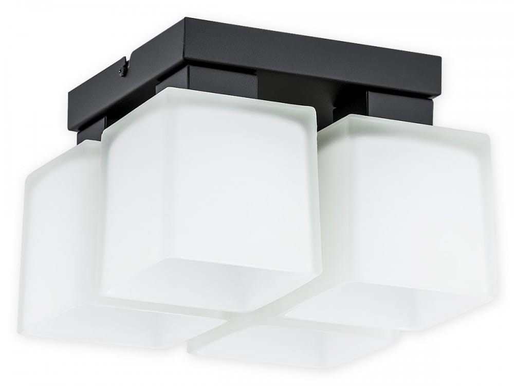 Lampa sufitowa cztery szklane klosze kostki na czarnej podstawie Lemir O2975 P4 CZA + BIA Teru 4xE27