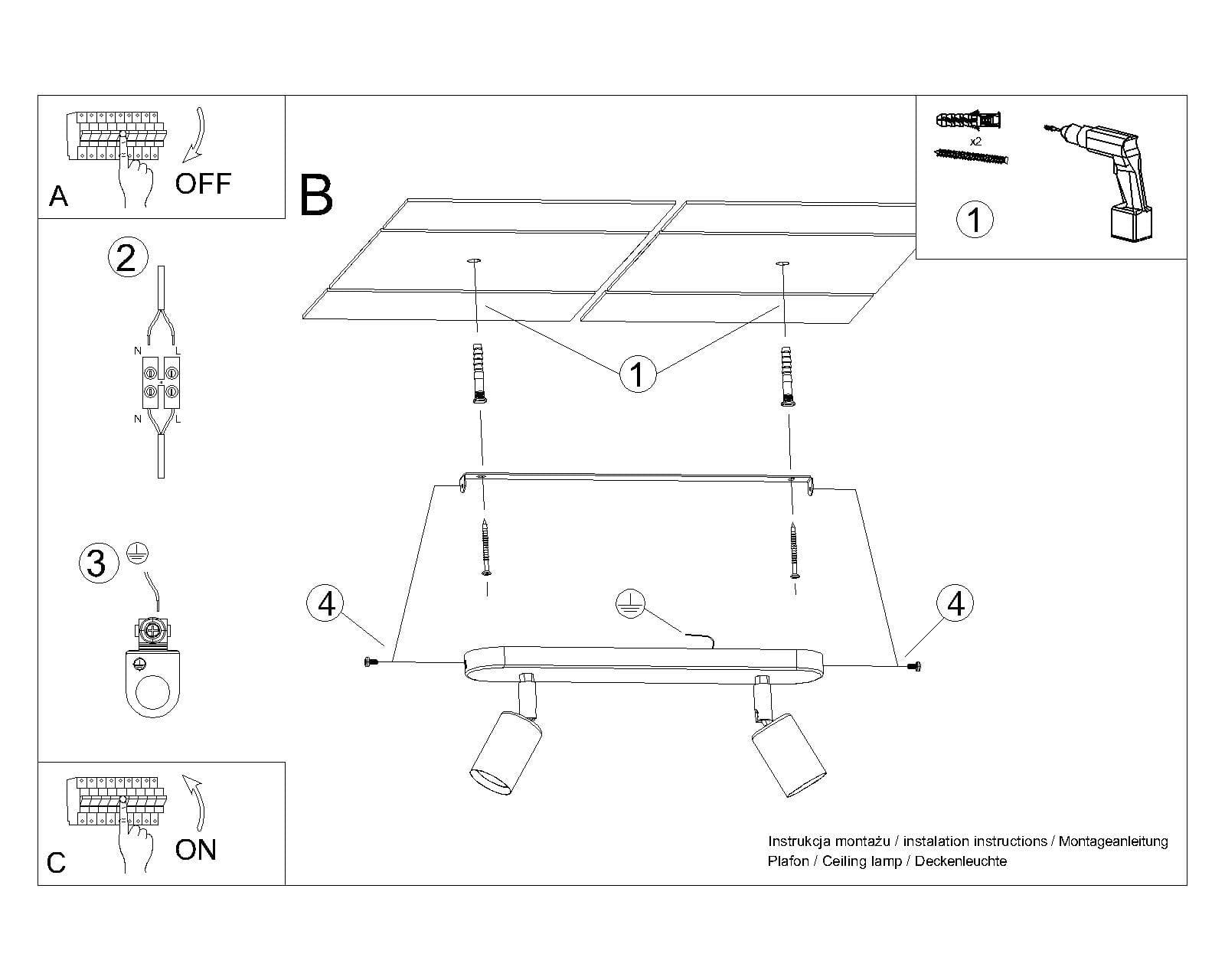 Lampa sufitowa plafon dwupunktowy regulowany Sollux Lighting SL.1121 FORNES 2 czarny 2xE27