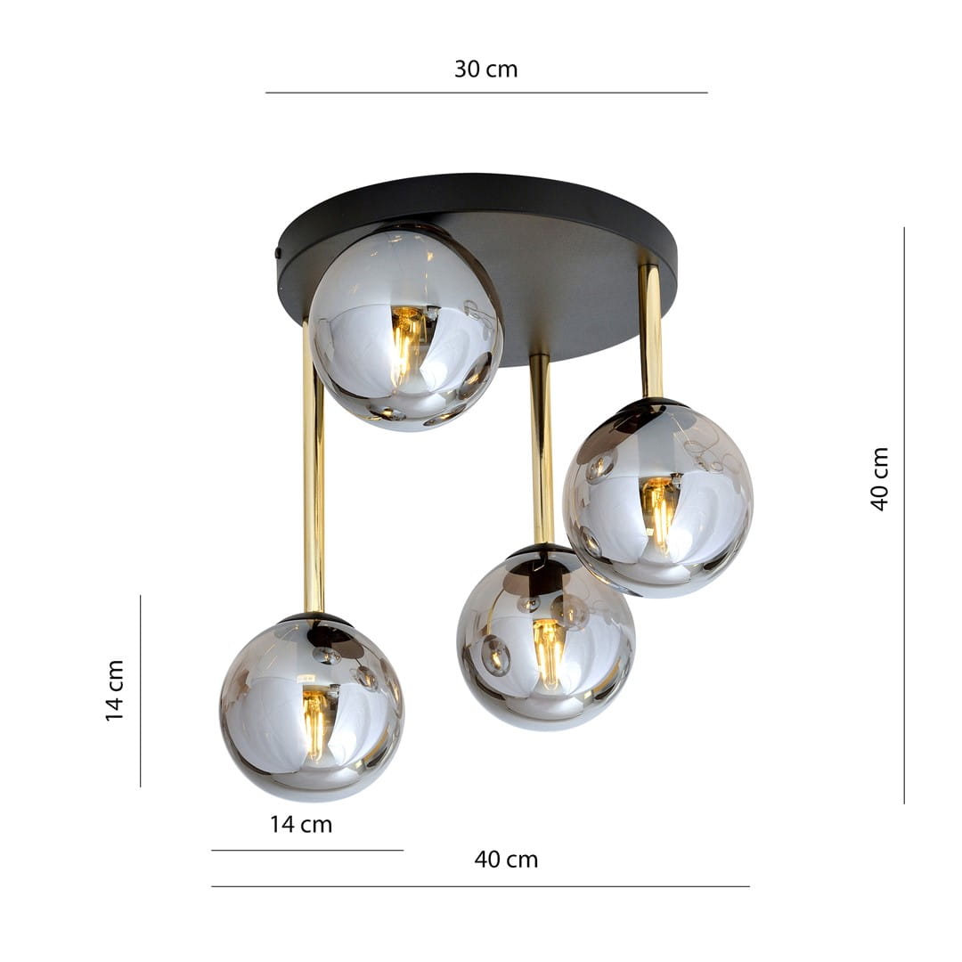 Lampa sufitowa plafon okrągła czarna podstawa złote ramiona i grafitowe klosze Emibig 1259/4 Dolce 4xE14 40cm