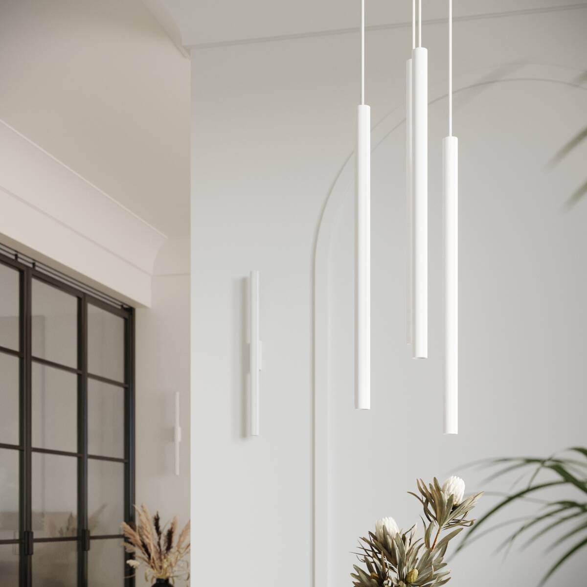 Lampa wisząca dwie długie wąskie tuby stalowe Sollux Lighting SL.1303 Ocean Green PASTELO 2 biała 2xG9