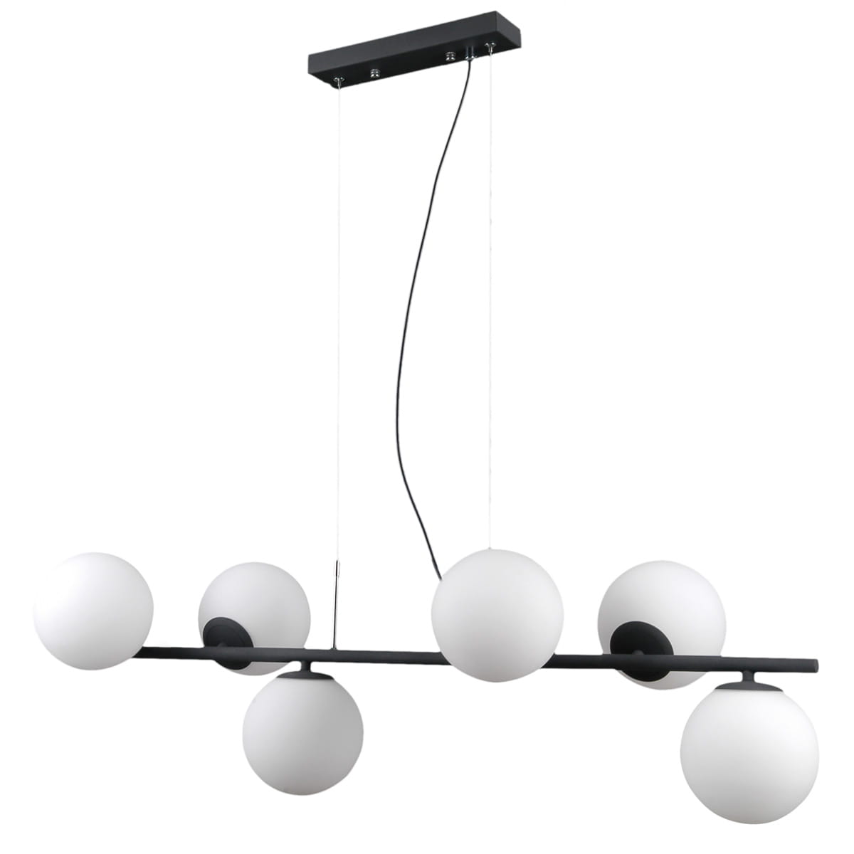 Lampa wisząca grafitowa listwa 91cm i 6 szklanych kloszy Italux PND-5510-6-BK Raddi 6xG9