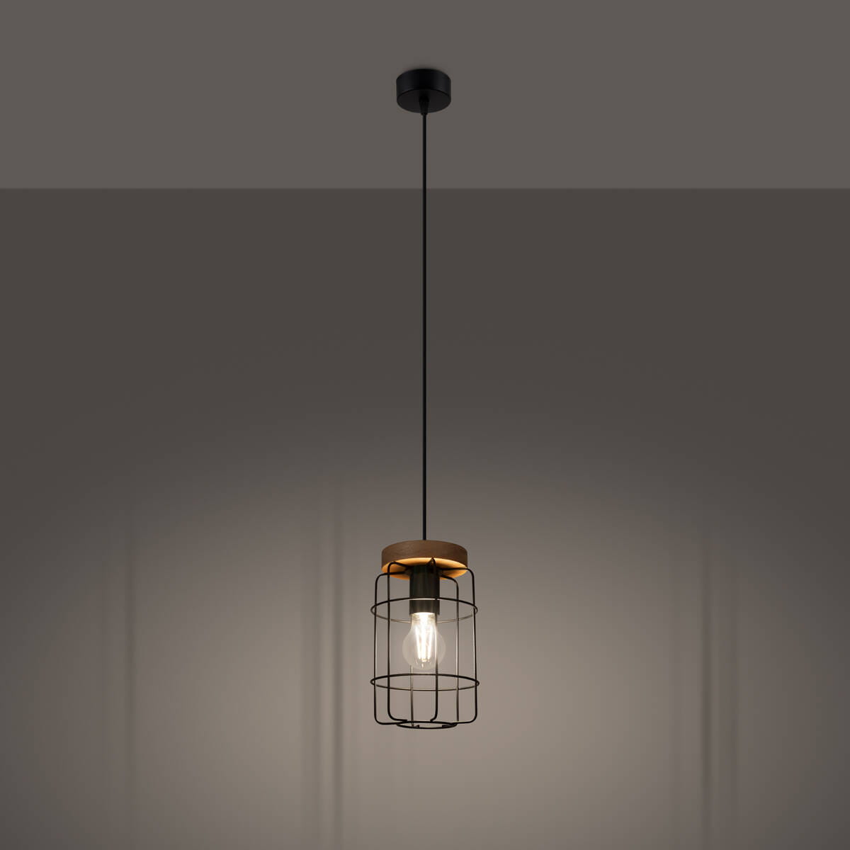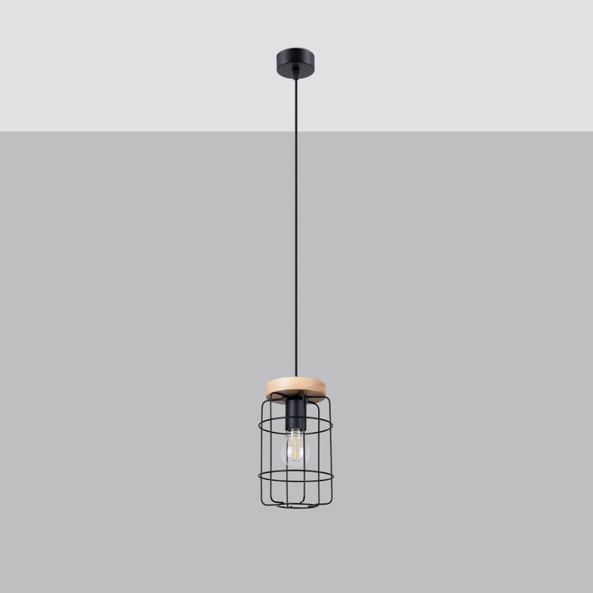 Lampa wisząca pojedyncza ażurowy druciany klosz drewno i stal Sollux Lighting SL.1263 Peach Puff GOTTO 1 1xE27