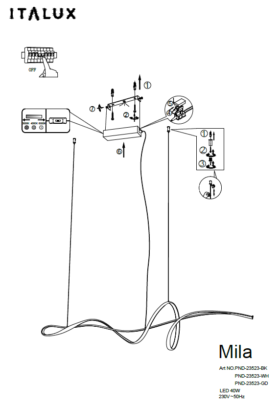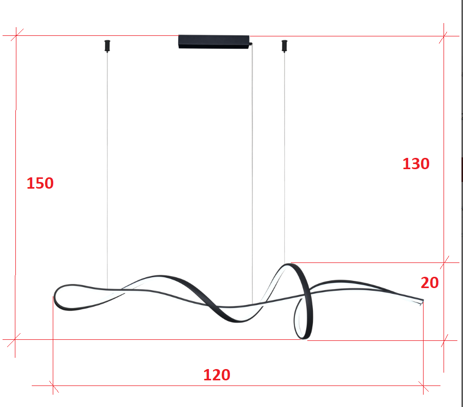 Lampa wisząca spirala ledowa Italux PND-23523-BK Mila LED 40W 3000/4000/6000K 120cm