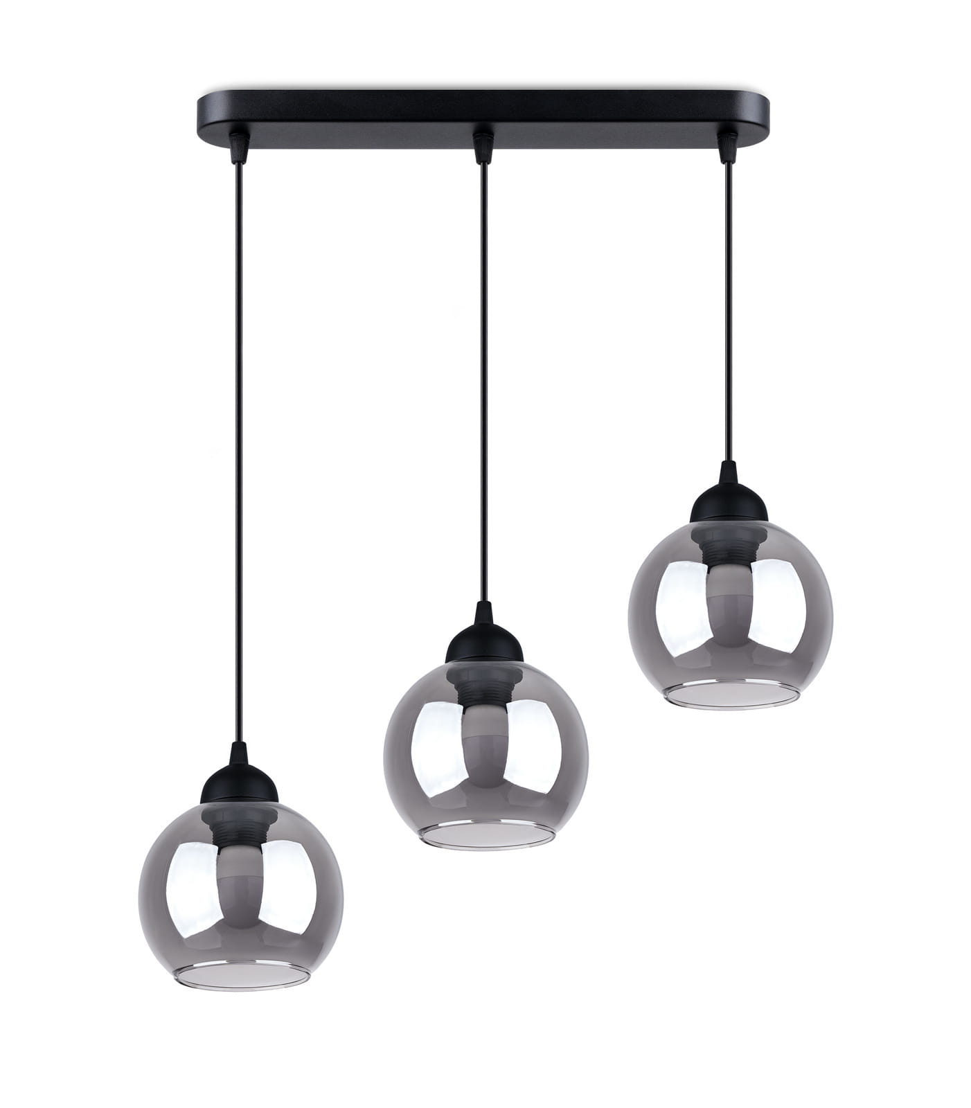 Lampa wisząca stalowa z trzema szklanymi kloszami okrągłymi na listwie Sollux Lighting SL.1142 ALINO 3 czarna 3xE27