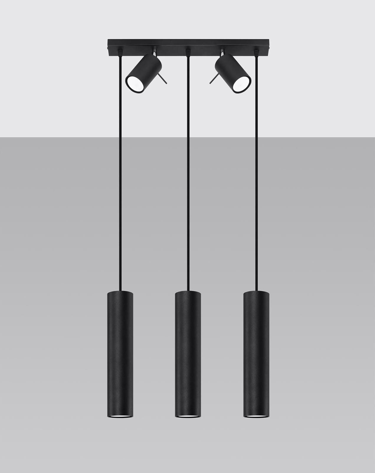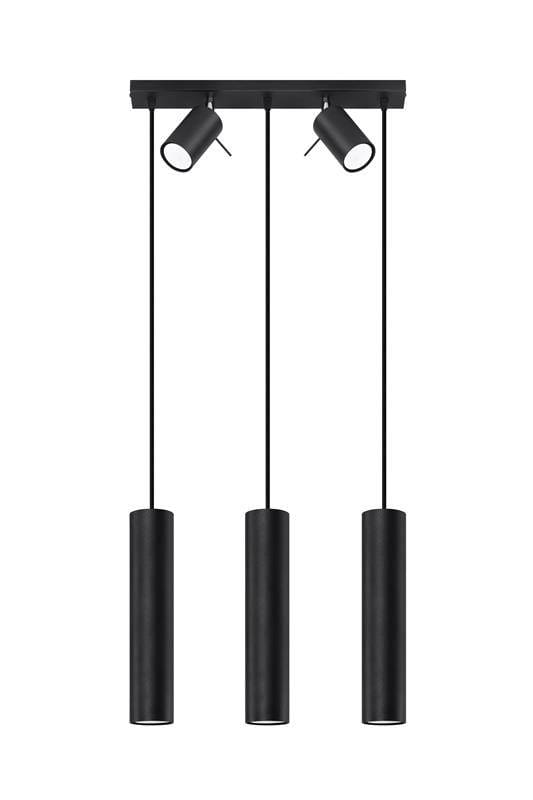 Lampa wisząca trzy długie wąskie stalowe tuby dwa reflektory regulowane na listwie Sollux Lighting SL.1099 Bittersweet Shimmer RING 3 czarny 5xGU10
