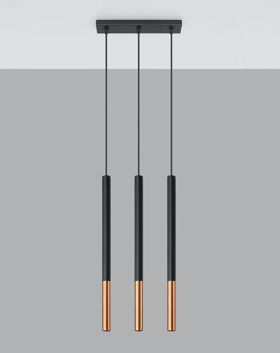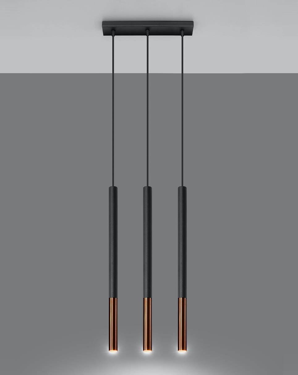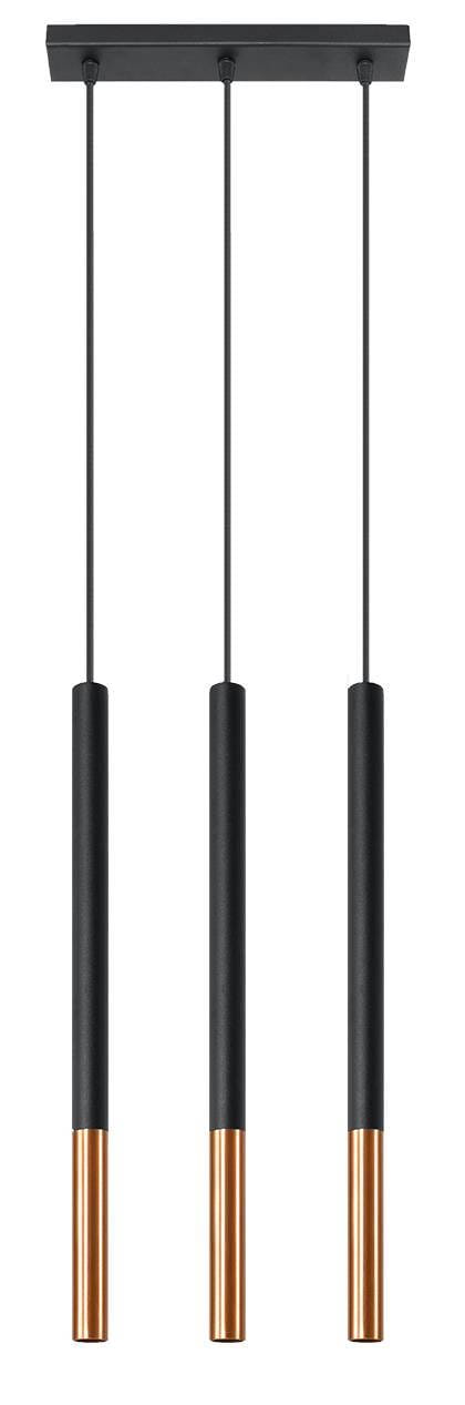 Lampa wisząca trzy długie wąskie tuby na listwie Sollux Lighting SL.0889 Ocean Green MOZAICA 3L czarny/miedź 3xG9