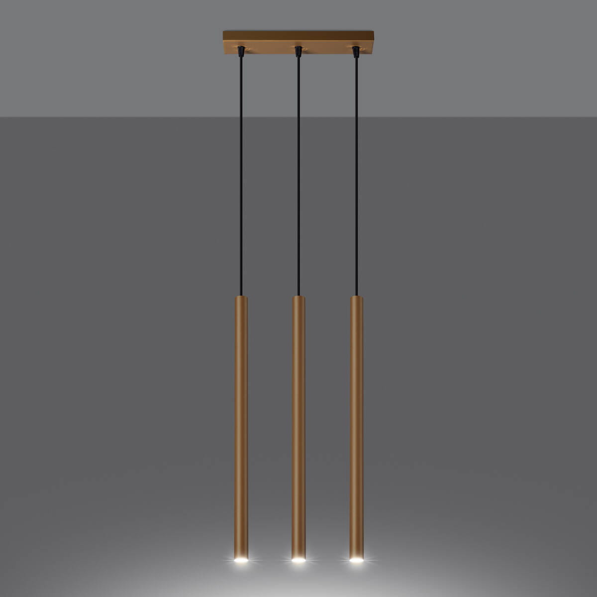 Lampa wisząca trzy długie wąskie tuby na listwie Sollux Lighting SL.1171 Ocean Green PASTELO 3L złota 3xG9