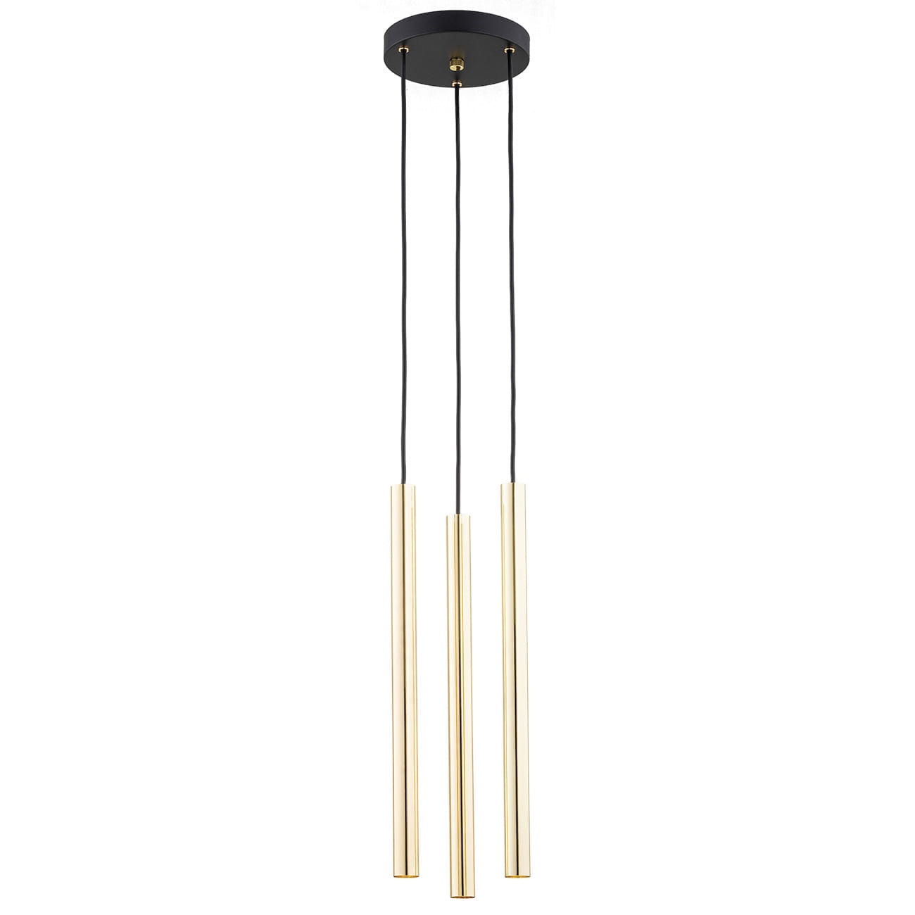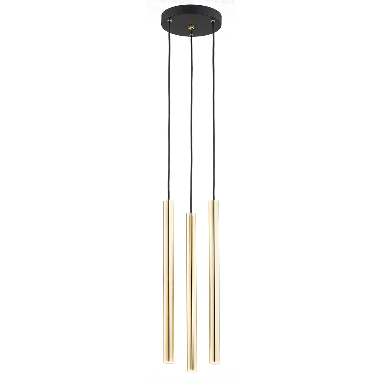 Lampa wisząca trzy mosiężne tuby na czarnej okrągłej rozecie Argon 6106 Sicilia LED 3x4,5W 3000K