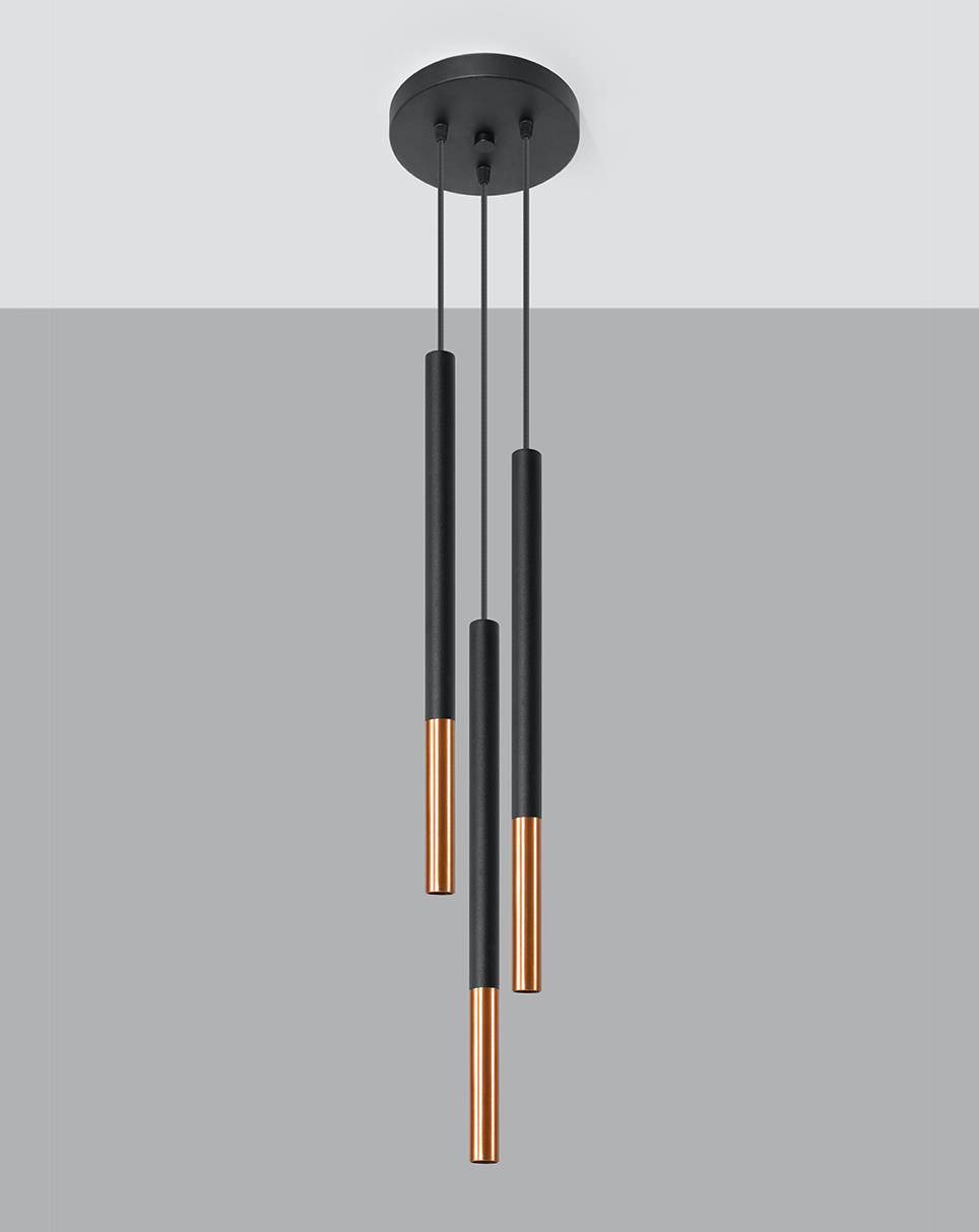 Lampa wisząca trzy stalowe rurki Sollux Lighting SL.0890 Ocean Green MOZAICA 3P czarny/miedź 3xG9