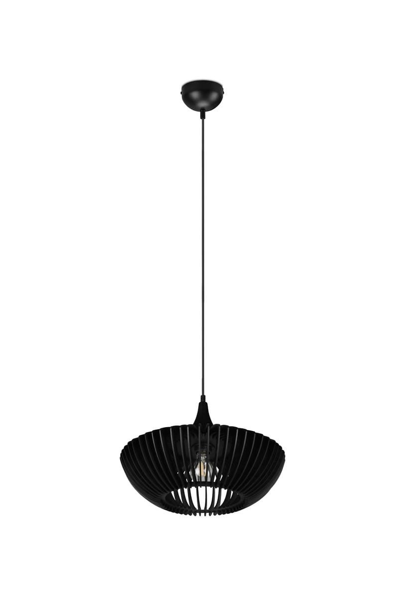 Lampa wisząca z gustownym kloszem z drewnianych listewek czarny mat Trio Lighting 315900132 Colino 1xE27