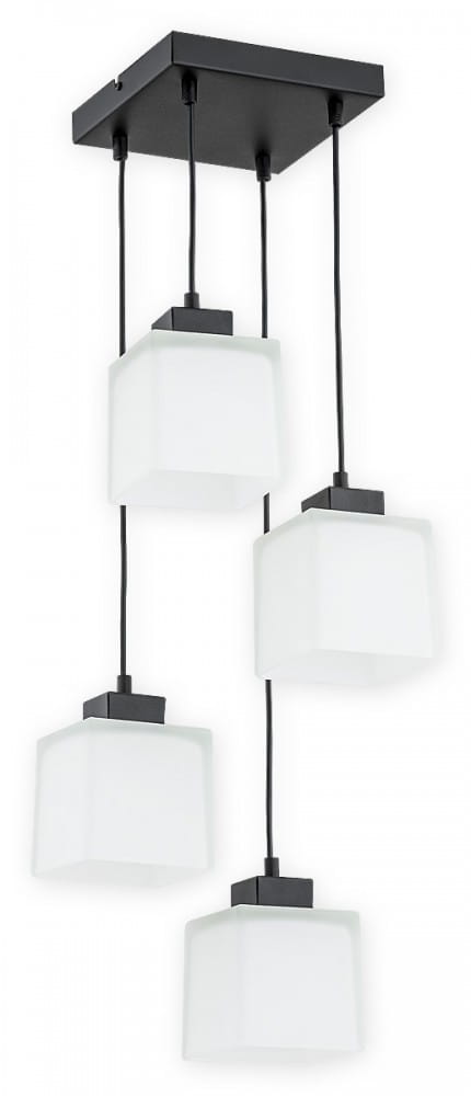 Lampa wisząca z kloszami kostkami na czarnej podsufitce Lemir O2975 W4 CZA + BIA Teru 4xE27