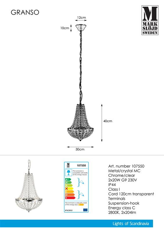 Lampa wisząca z kryształkami do salonu srebrny długi łańcuch MarkSlojd 107550 Gränsö 2xG9 160cm x 30cm