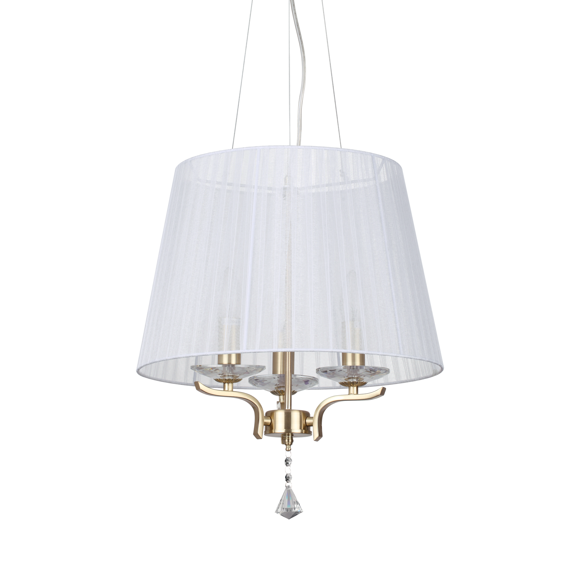 Lampa wisząca z mosiężnym stelażem z kryształkiem abażur biały z plisowanej tkaniny Ideal Lux 197715 Pegaso 3xE14 40cm x 260cm