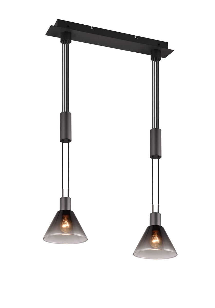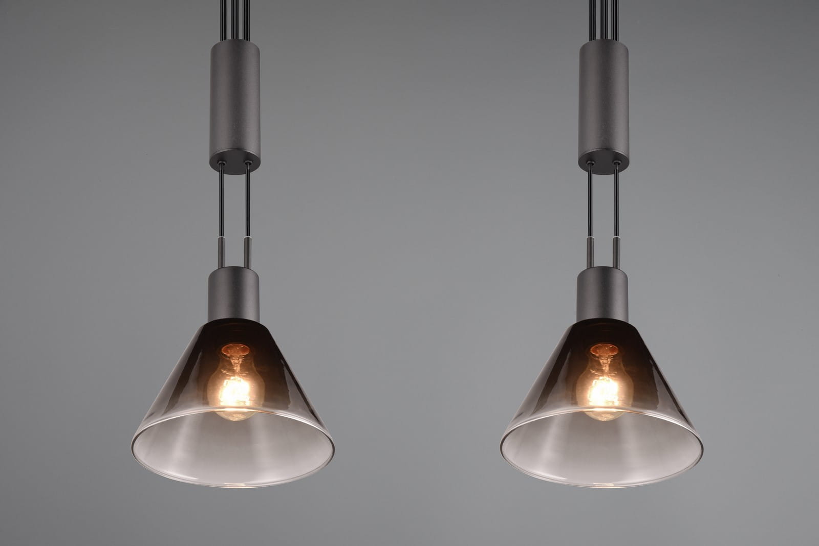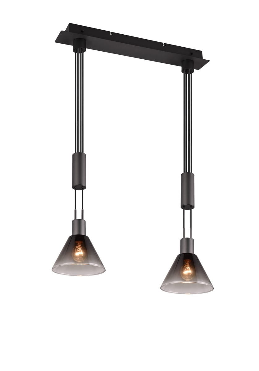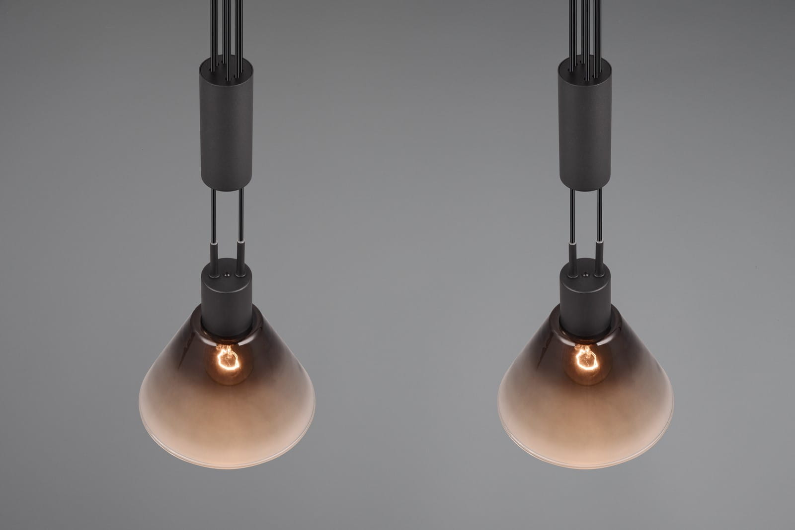 Lampa wisząca z regulacją wysokości i dwoma przydymionymi szklanymi kloszami Trio Lighting 319500232 Stanley 2xE27