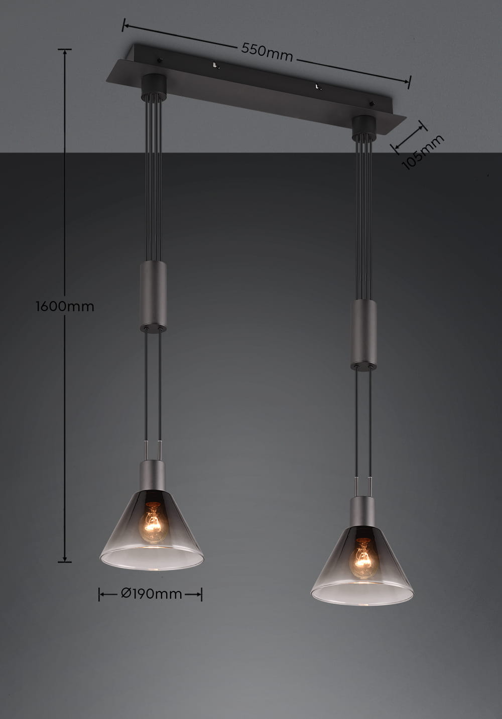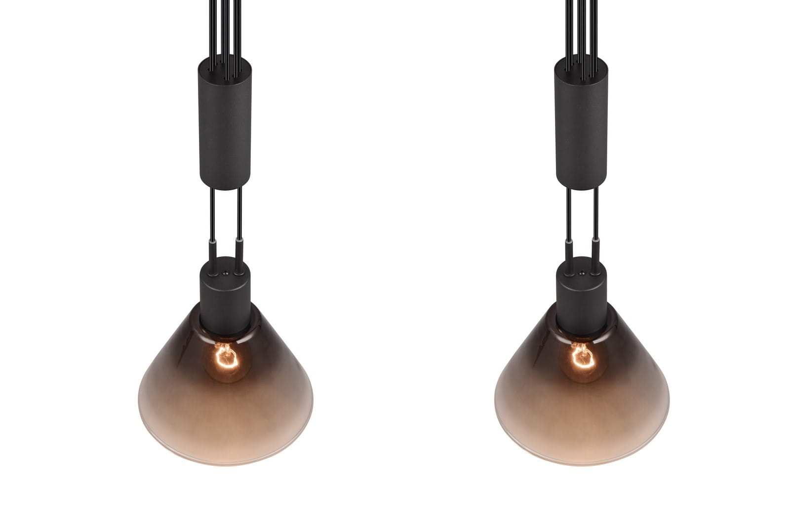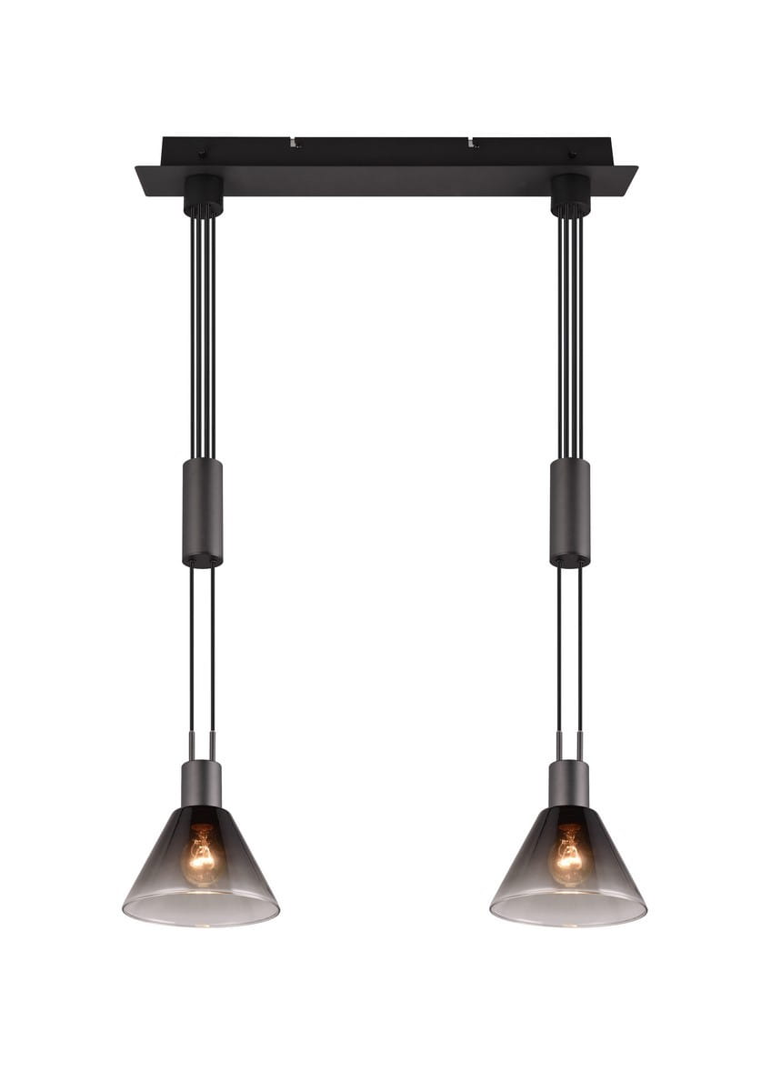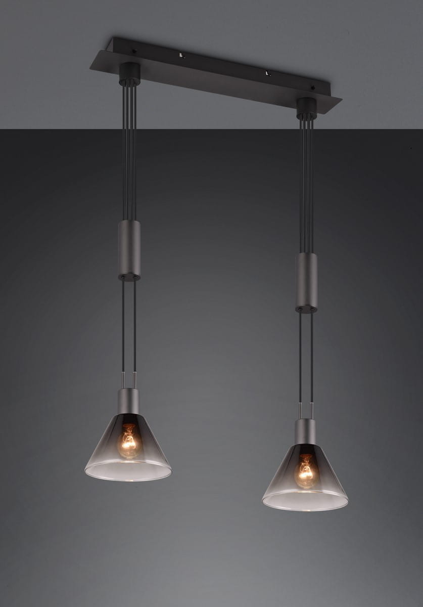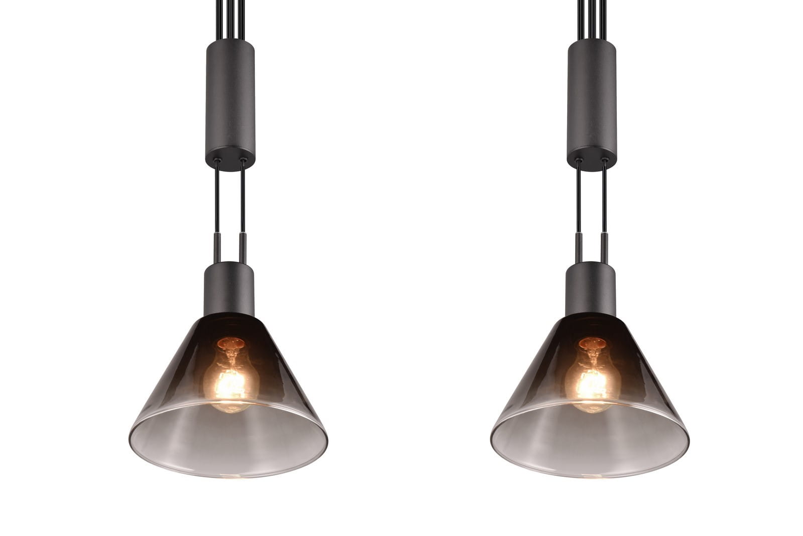 Lampa wisząca z regulacją wysokości i dwoma przydymionymi szklanymi kloszami Trio Lighting 319500232 Stanley 2xE27