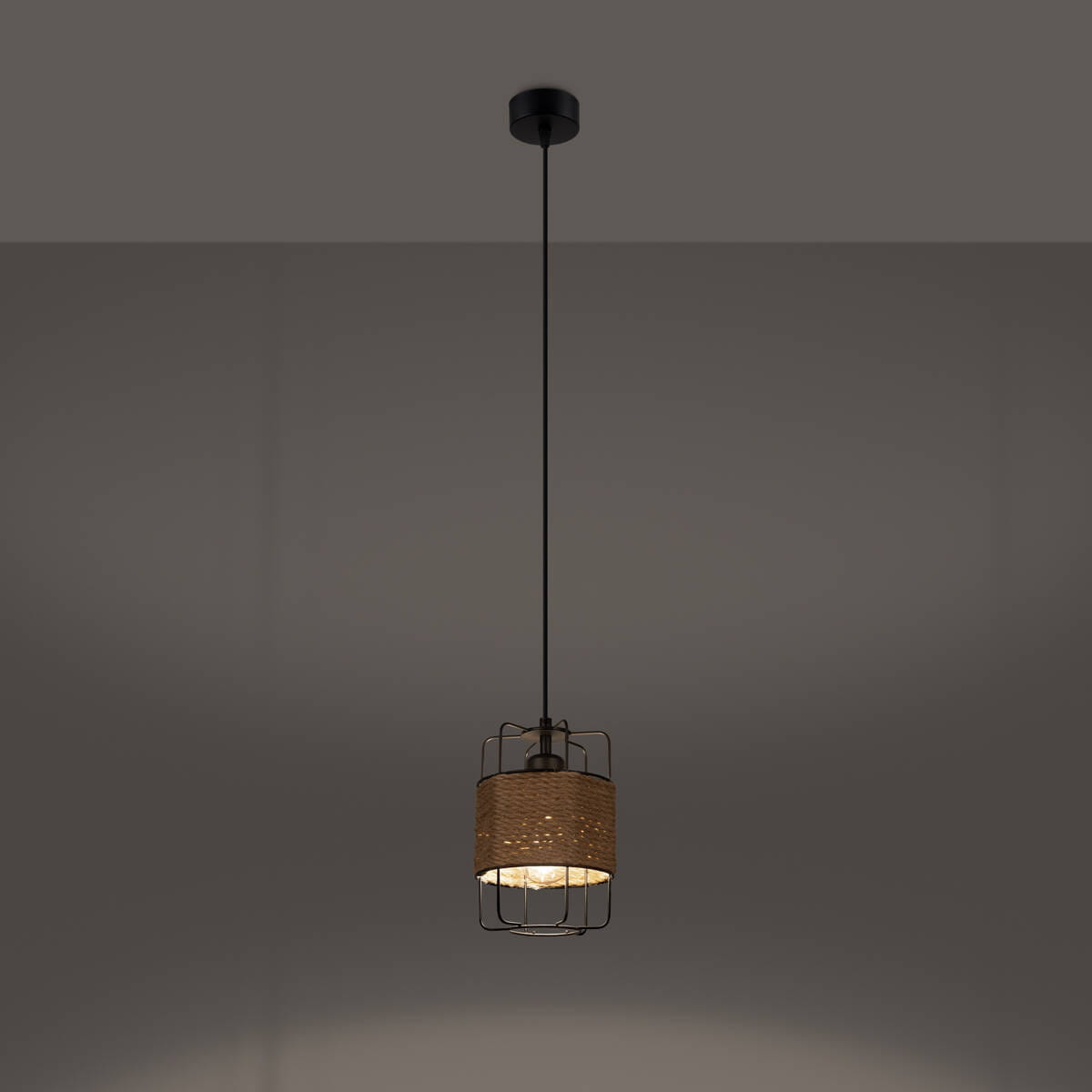 Lampa wisząca ze stalowym kloszem klatką owiniętym sznurem Sollux Lighting SL.1300 Powder Blue GIZUR 1 1xE27 130cm