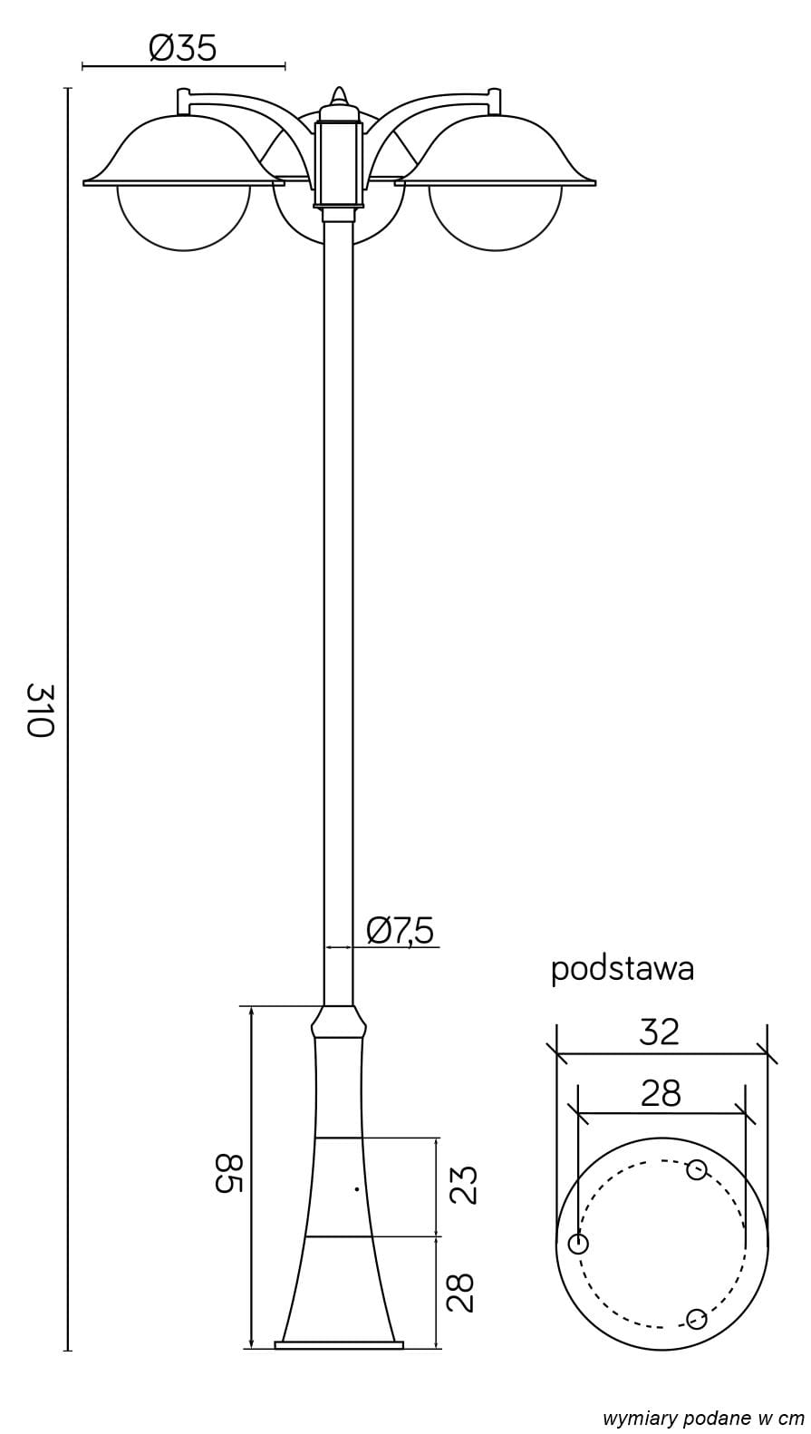 Producent może wykonać oprawę w innej wysokości. W celu zamówienia produktu w wybranej wersji kolorystycznej korpusu oraz kloszy lub dedykowanej wysokości prosimy o kontakt e-mail. Ze względu na rozmiar produktu transport jest zawsze płatny i wynosi 199,00 zł. Do oprawy nie dołączamy śrub montażowych. |