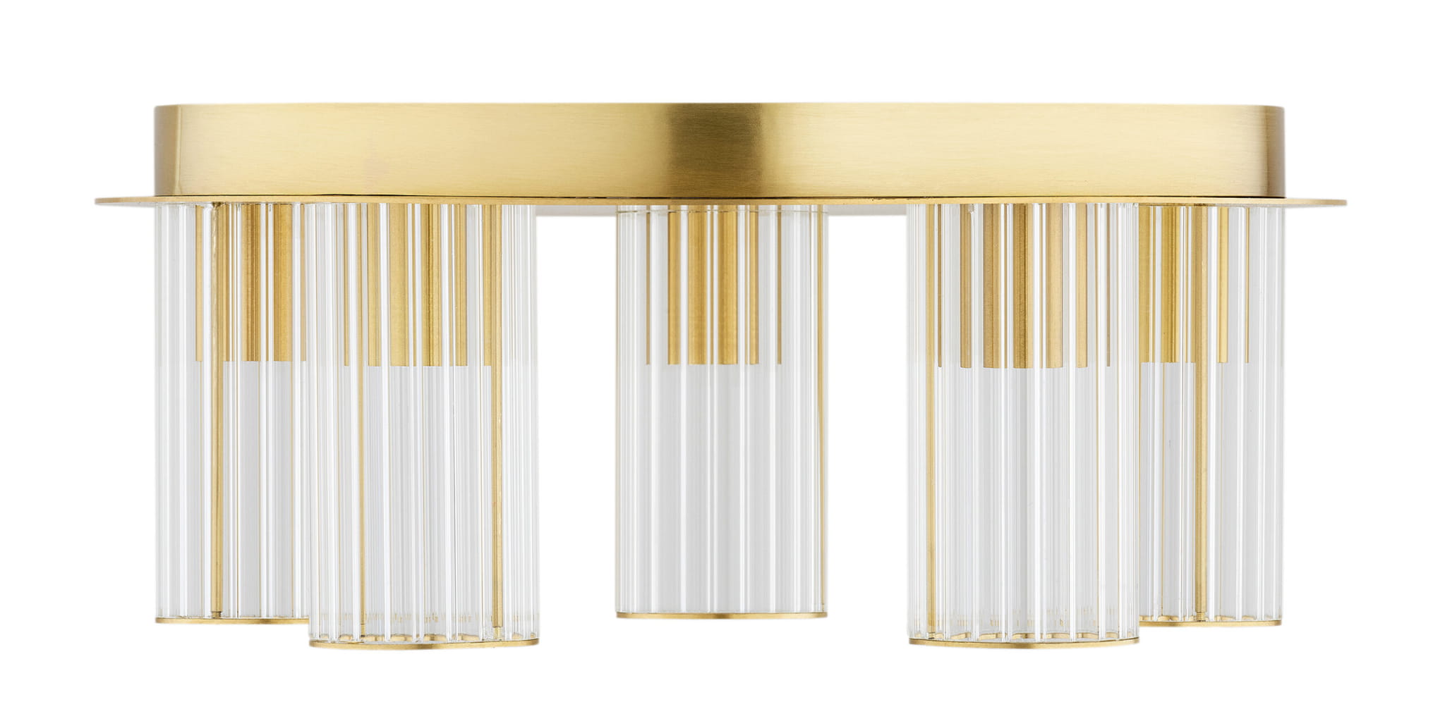 Mosiężna lampa sufitowa z walcowymi ryflowanymi kloszami Argon 2178 Hampton 5xE14 45cm