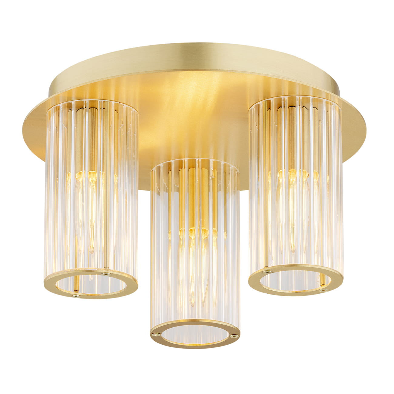 Mosiężna lampa sufitowa z walcowymi ryflowanymi kloszami Argon 6304 Hampton 3xE14 30cm