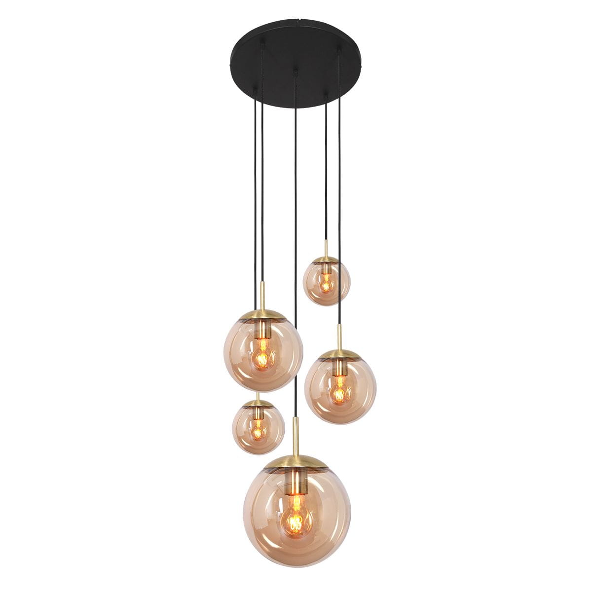 Mosiężna lampa wisząca z bursztynowymi kloszami Steinhauer 2730ME Bollique 5xE27