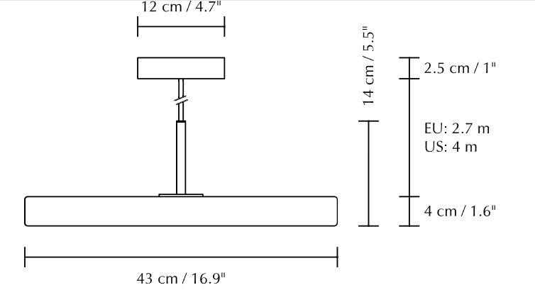 | Wys. całkowita (mm) | Przewód 2,7 m, regulowany |