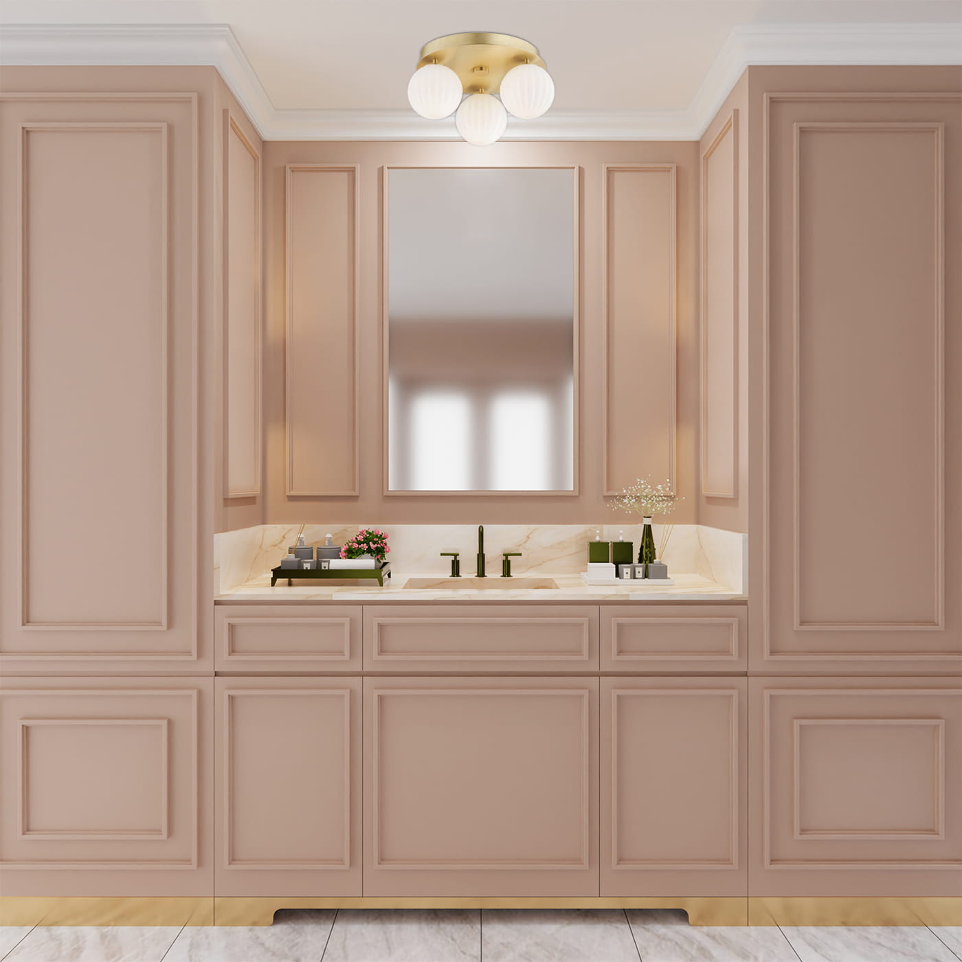 Mosiężny okrągły plafon z trzema kloszami kulami Argon 6305 Paloma 3xE14 34cm