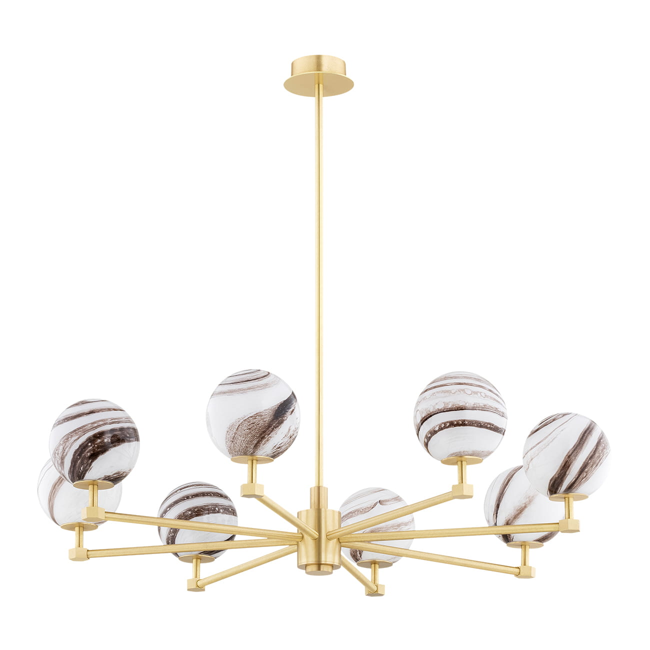 Mosiężny szczotkowany żyrandol sufitowy z kloszami szklanymi kulami Argon 5067 Aruba 8xE14 82cm