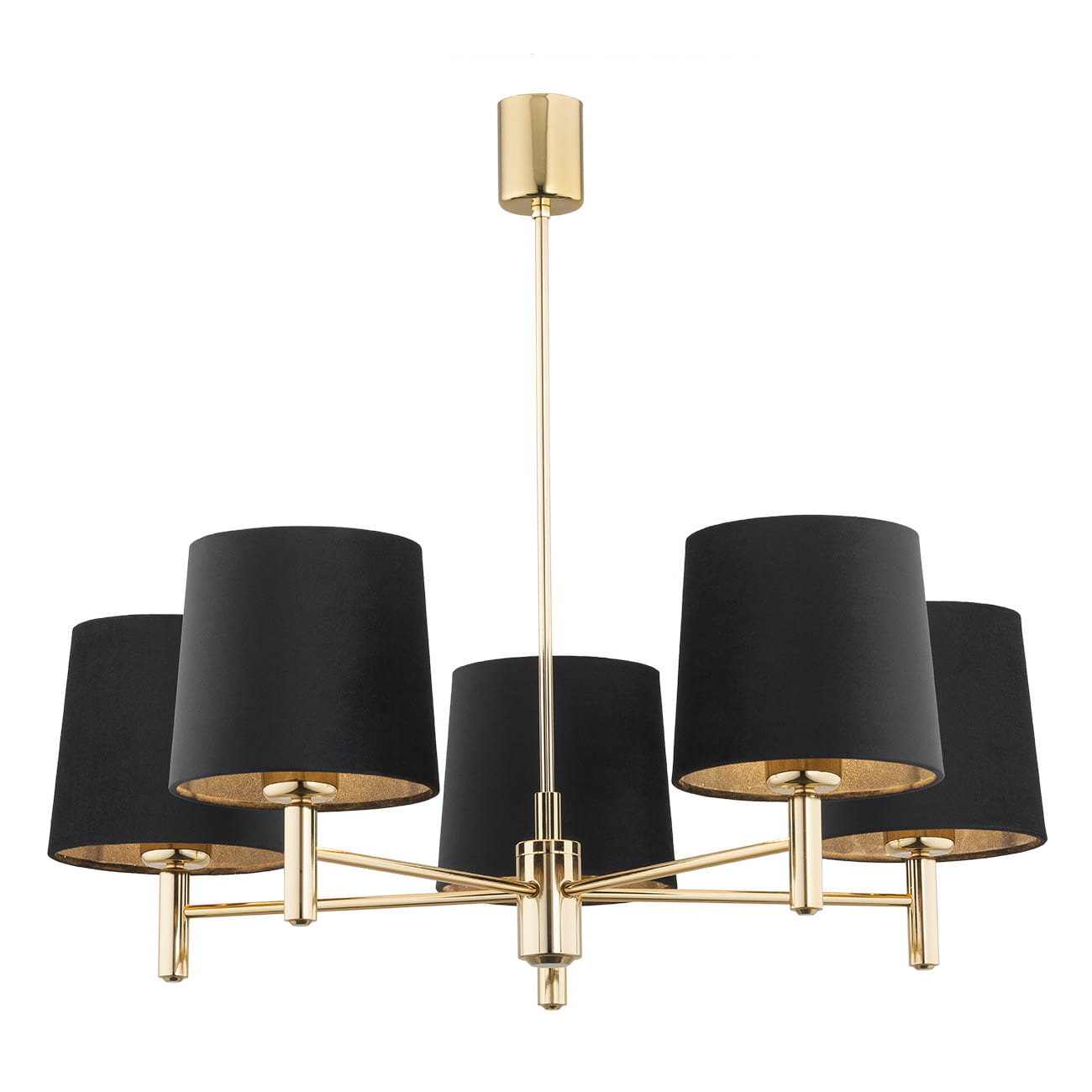 Mosiężny żyrandol z pięcioma czarnymi abażurami Argon 2107 Ponte Plus 5xE27 70cm