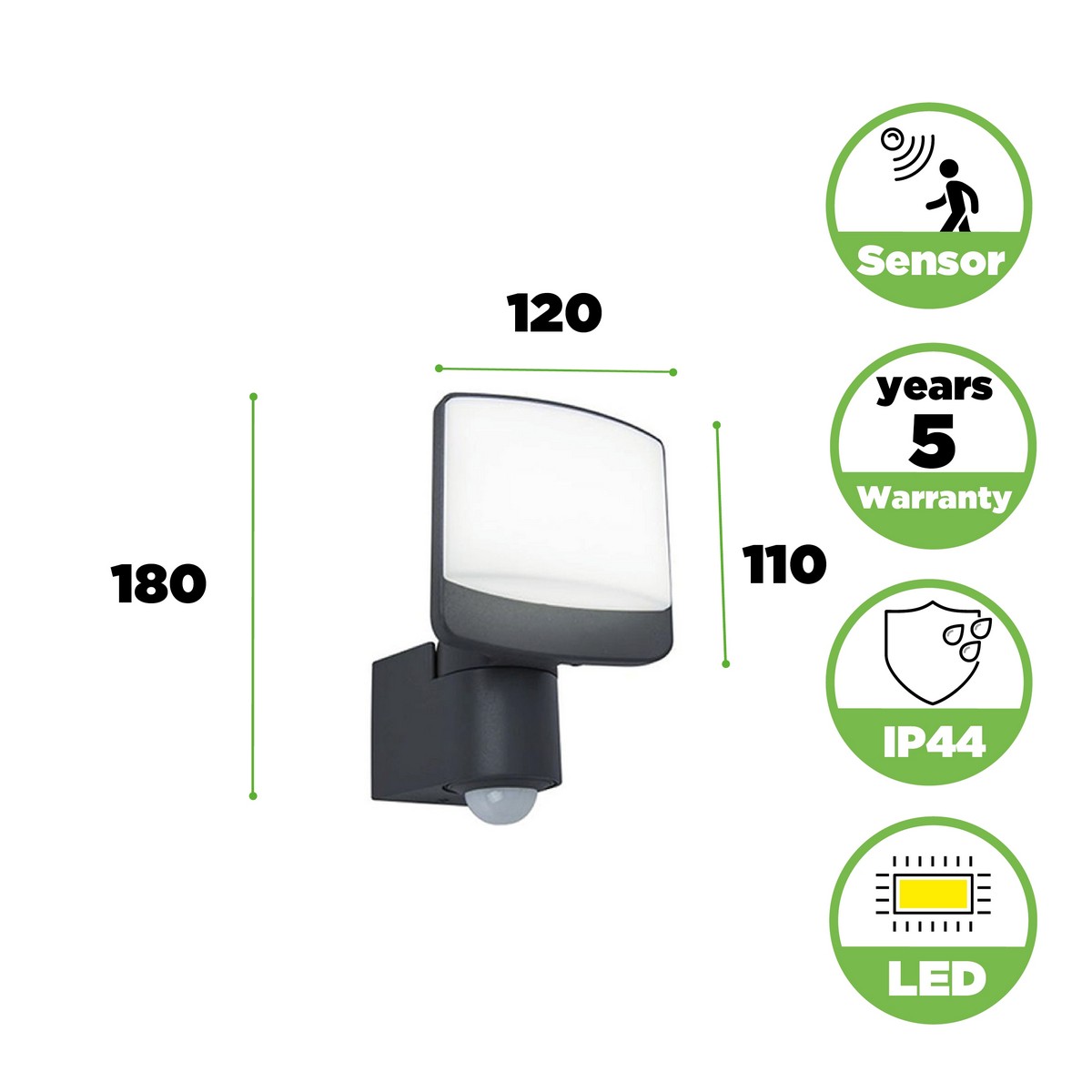 Naświetlacz Lutec 7625701345 Sunshine LED 12W 800LM 5000K IP44 Czujnik ruchu zmierzchu szary