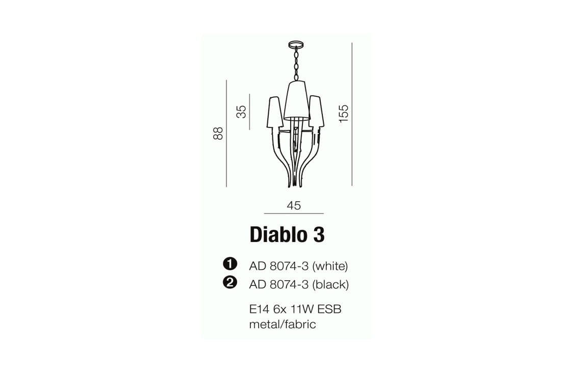 Nowoczesny chromowany żyrandol z czarnymi abażurami na łańcuchu Azzardo AZ1345 Diablo 6xE14 45cm