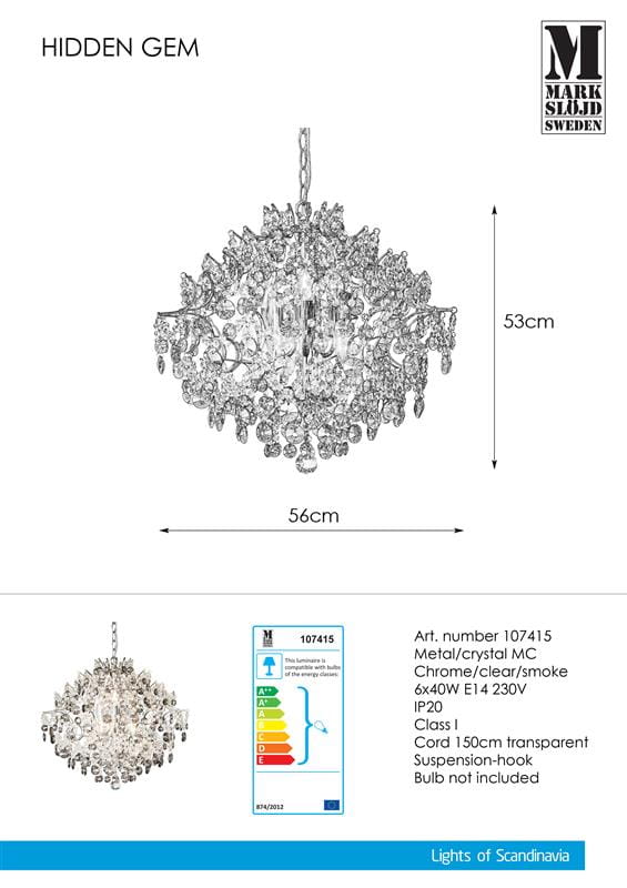 Okrągła lampa wisząca chromowana z ozdobnymi kryształkami MarkSlojd 107415 Hidden 6xE14 56cm