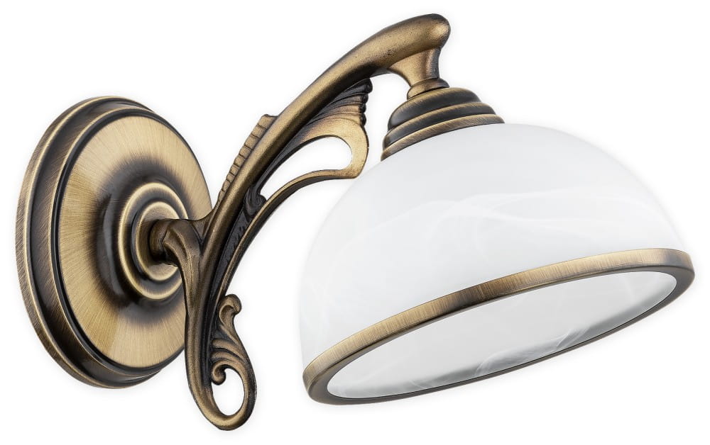 Patynowany klasyczny pojedynczy kinkiet z alabastrowym kloszem Lemir O3160 K1 PAT Hermes E27