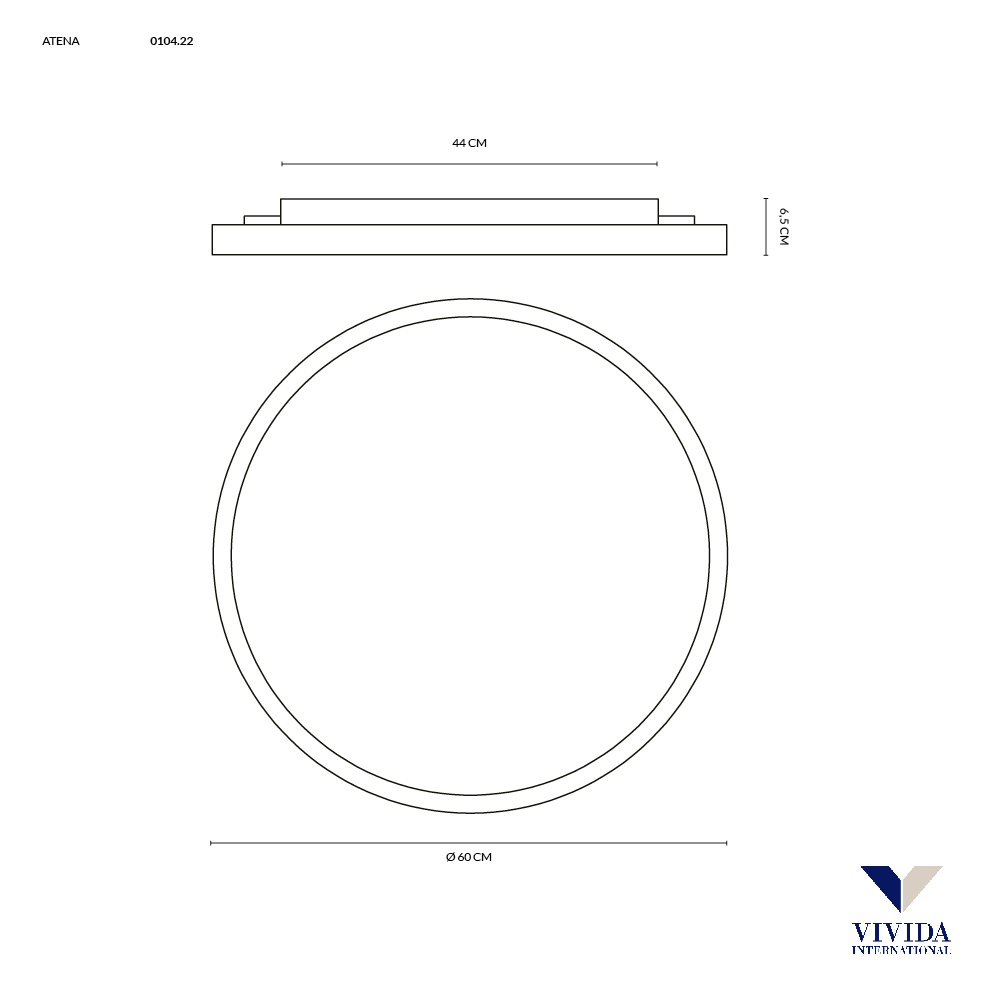 Piaskowy płaski okrągły plafon sufitowy Vivida International 0104.22.SA WN Atena LED 50W 3000K-4000K 60cm