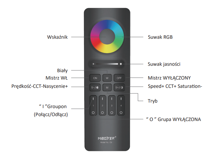 Pilot 4-strefowy do sterownika FUT039S tradycyjnych taśm LED RGB CCT do sterownika Prescot C5