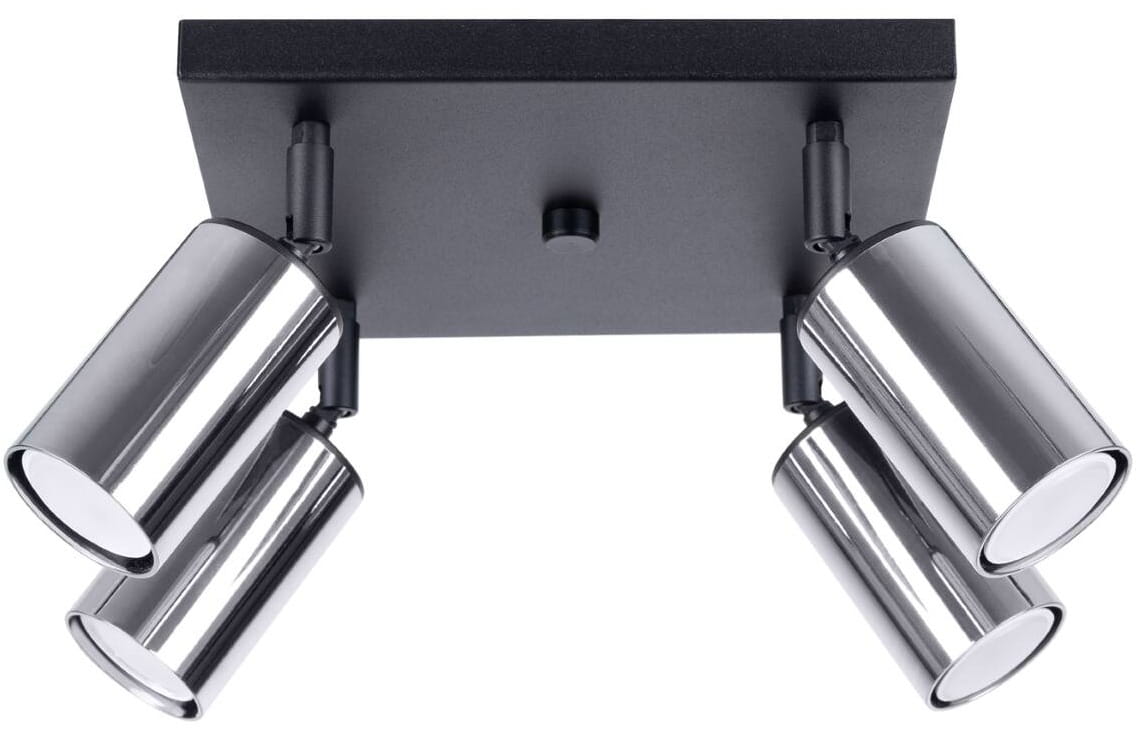 Plafon na cztery chromowane reflektory na czarnej kwadratowej podstawie Sollux Lighting SL.1370 Winx 4xGU10 25cm