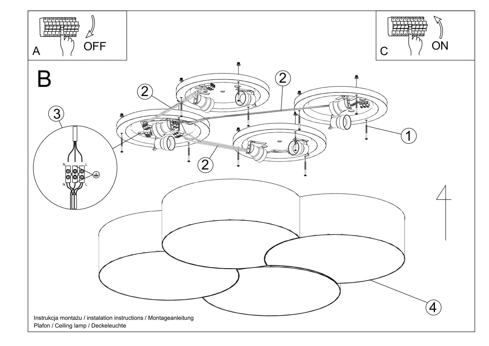 Plafon sufitowy klosz z tworzywa sztucznego koniczyna Sollux Lighting SL.1053 Spanish Orange CIRCLE 4 biały 8xE27