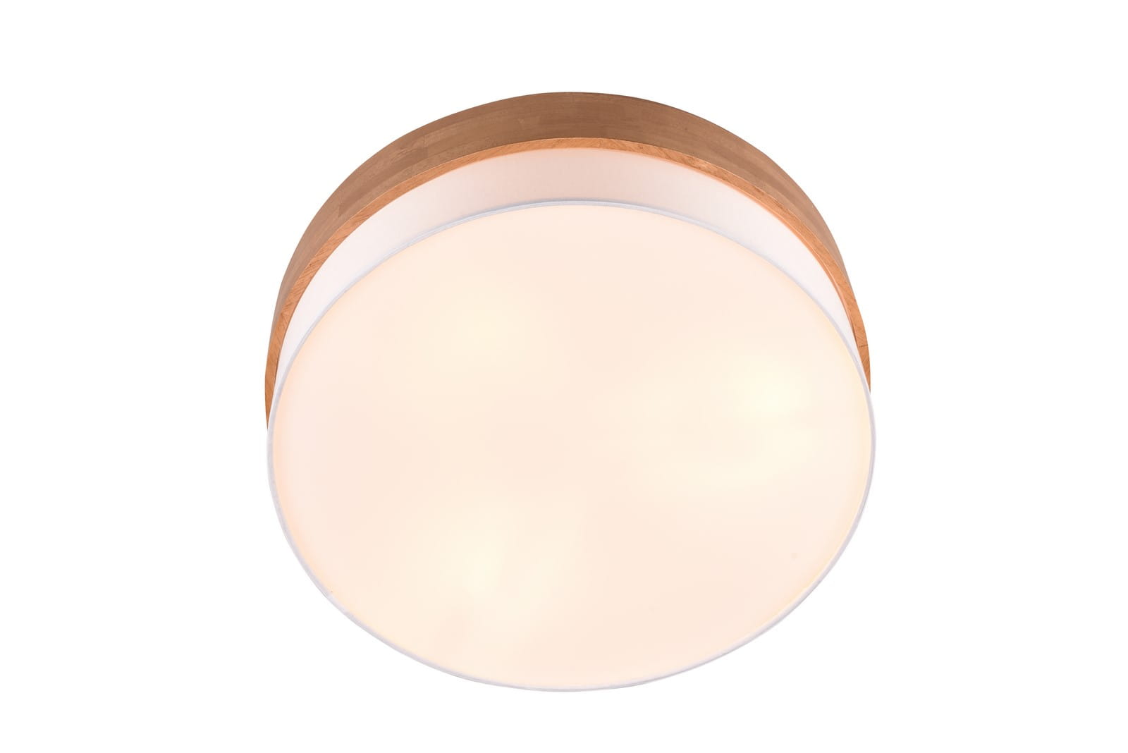 Plafon sufitowy okrągły jasne drewno i biały klosz z tkaniny Trio Lighting 611500301 Seasons 3xE27 50cm