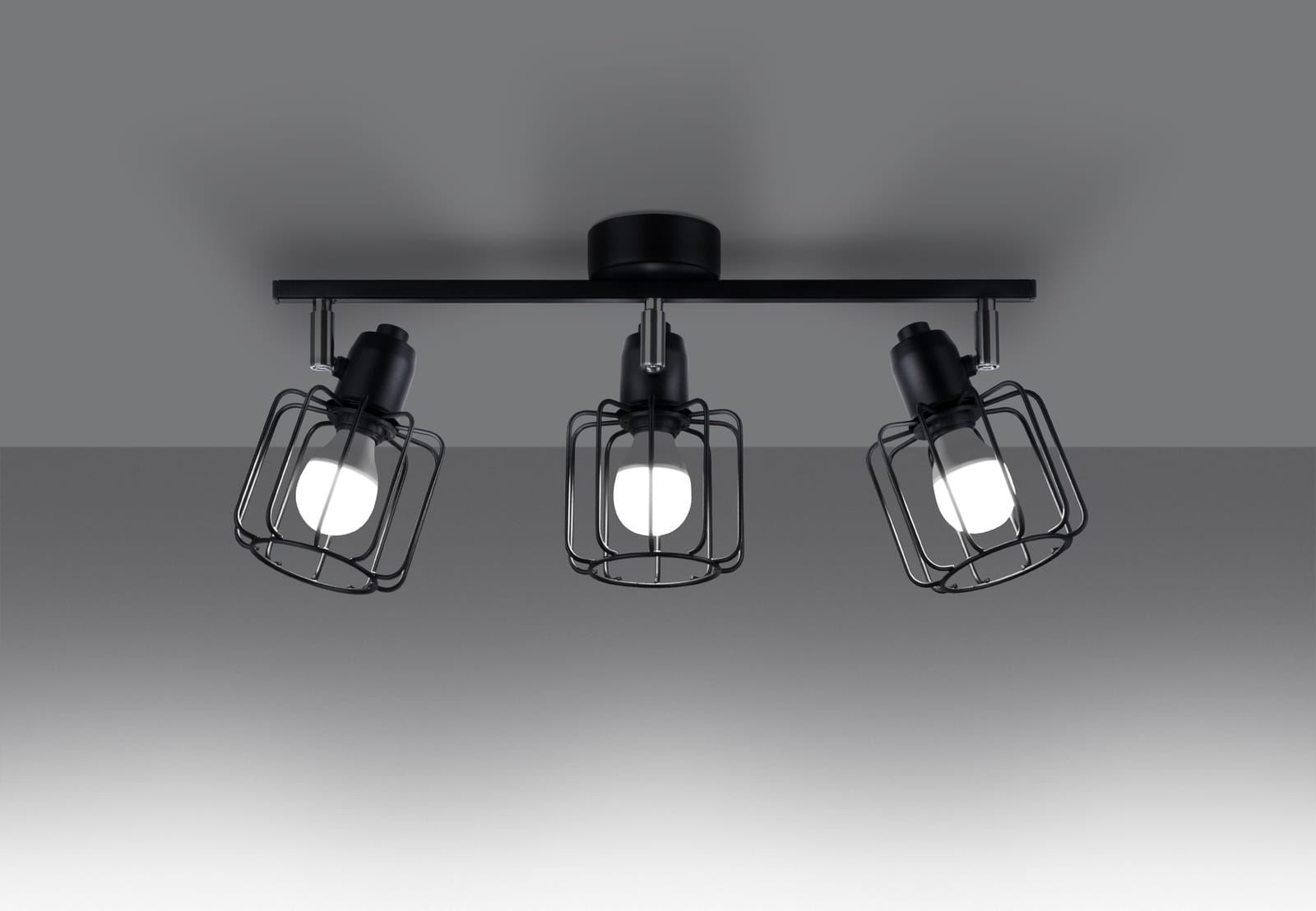 Plafon w stylu loftowym trzy stalowe ażurowe druciane klosze na listwie Sollux Lighting SL.1116 BELUCI 3 czarny 3xE14