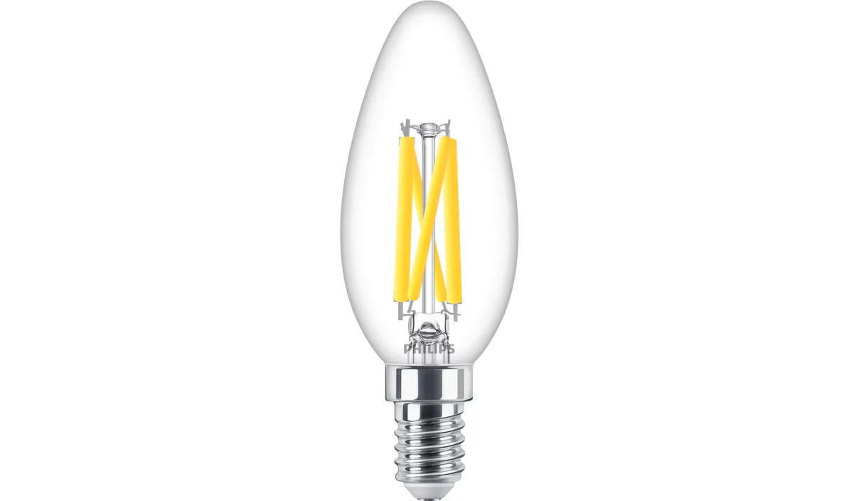 Średnio mocna ściemnialna żarówka LED ciepła E14 B35 3,4W 470LM 2700K Philips 8719514449411