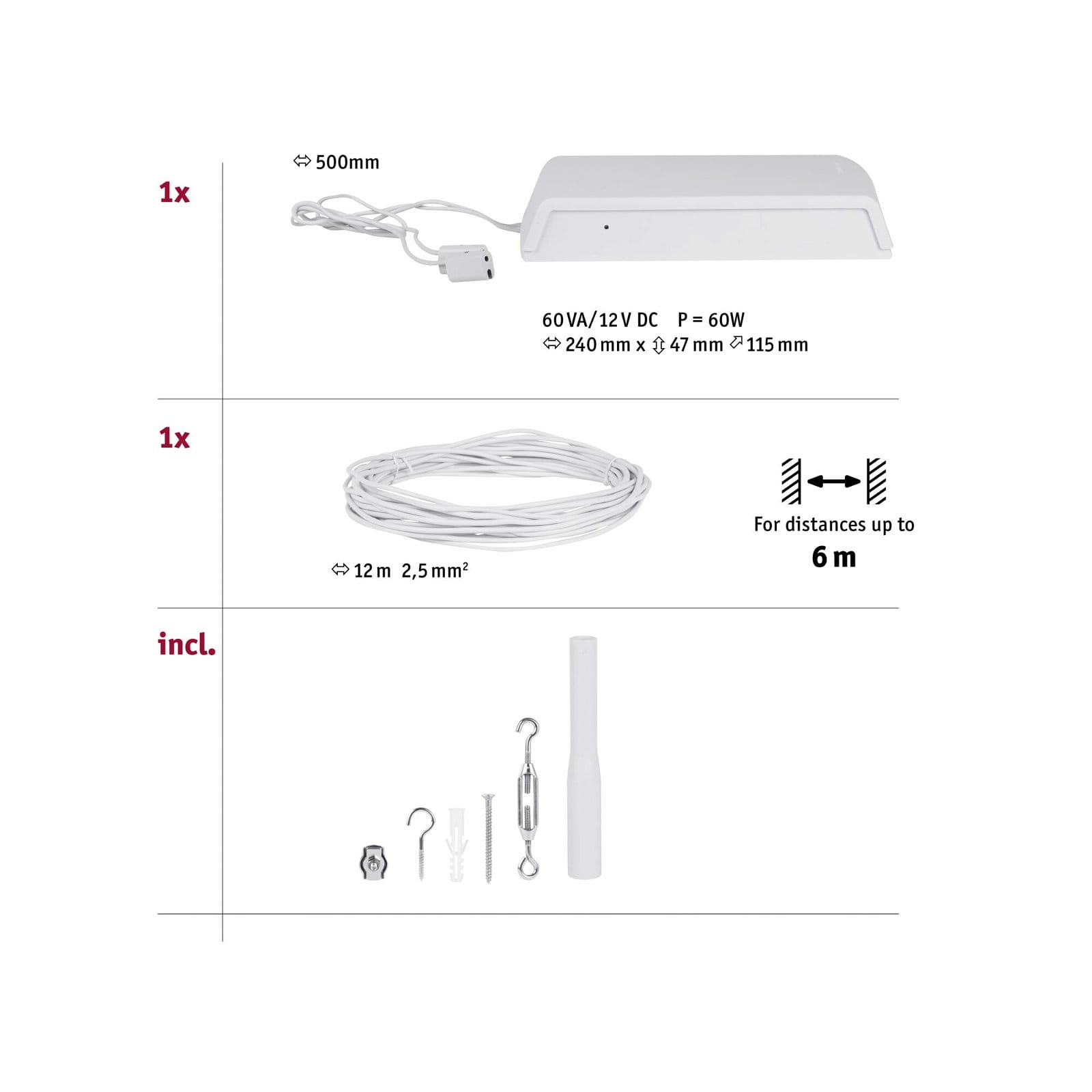 System linkowy DC Basic Set 60W Biały-mat 230V/12V DC 60VA 12m nie-ściem Paulmann PL94429