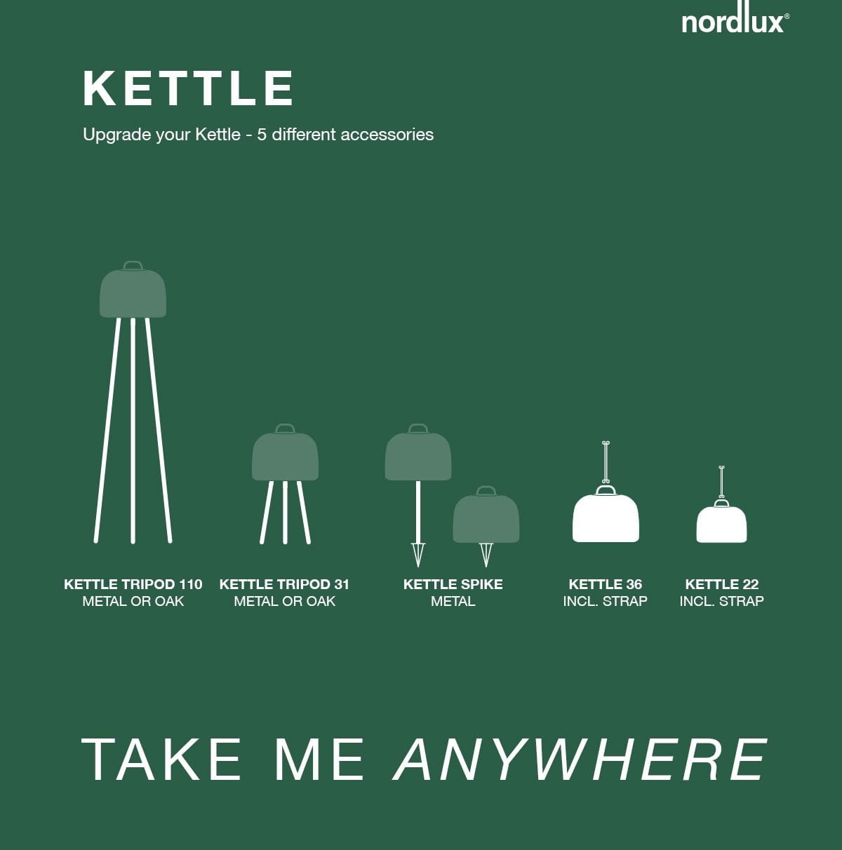 Możliwości są nieograniczone w przypadku serii Kettle, ponieważ dzięki wymiennym akcesoriom możesz określić rodzaj lampy, którą chcesz. Design i funkcjonalność są dokładnie przemyślane, dzięki czemu seria pięknie oświetla Twoją codzienność - zarówno wewnątrz, jak i na zewnątrz. Czajnik jest nie tylko ozdobą, ale również zapewnia dobre światło, a jednocześnie jasność światła można regulować w trzech poziomach. Wbudowana bateria ma żywotność do pięciu godzin przy pełnej mocy, a nawet dłużej, jeśli światło jest przyciemnione do przytulnego oświetlenia. Baterię można łatwo naładować za pomocą dołączonego kabla USB. Dzięki temu akcesorium Kettle zmienia się w przenośną lampę szpikulcową, którą można umieścić na przykład w kwietniku lub na podjeździe. Akcesorium pasuje do abażurów Kettle 22 i 36. |