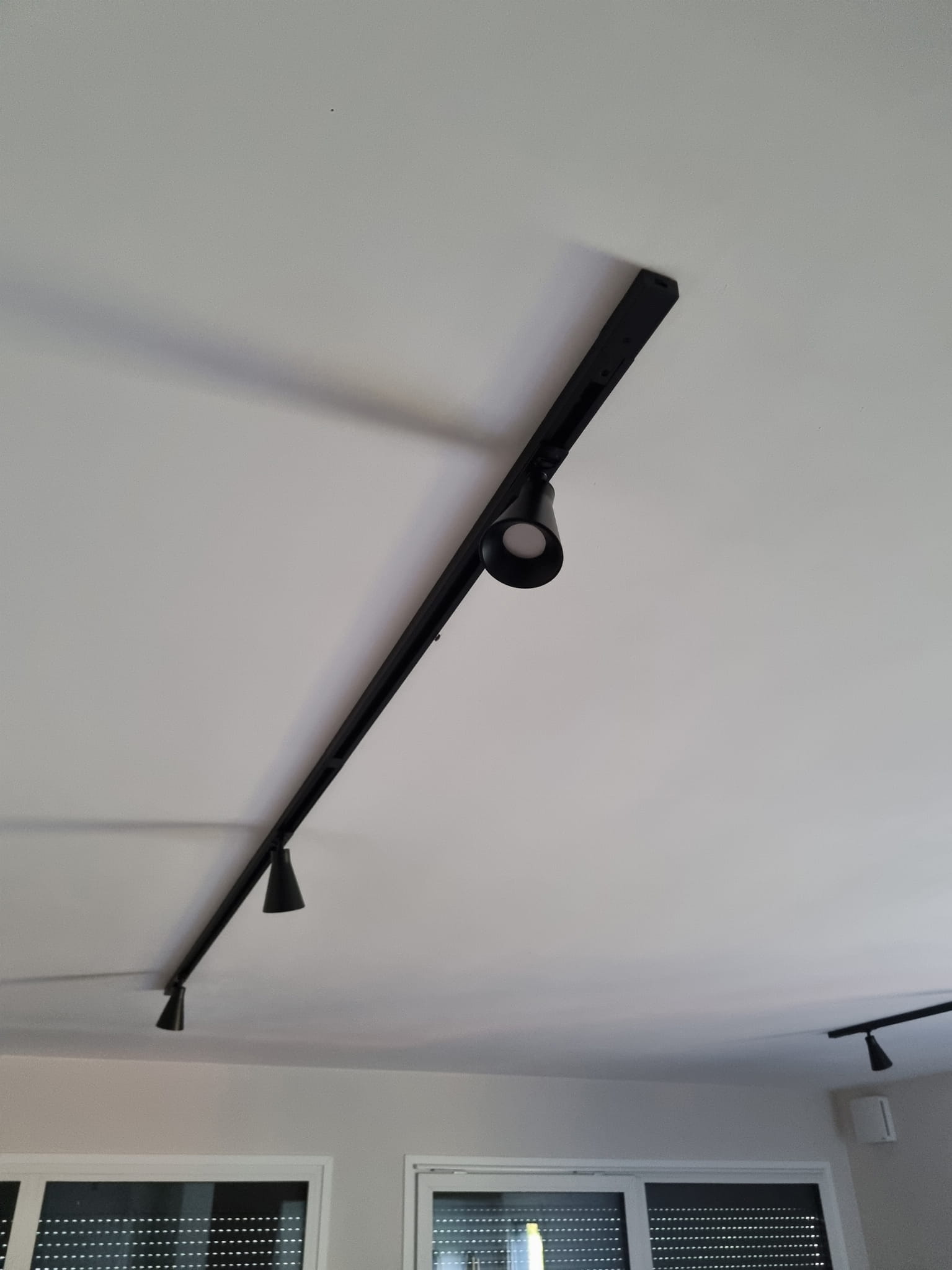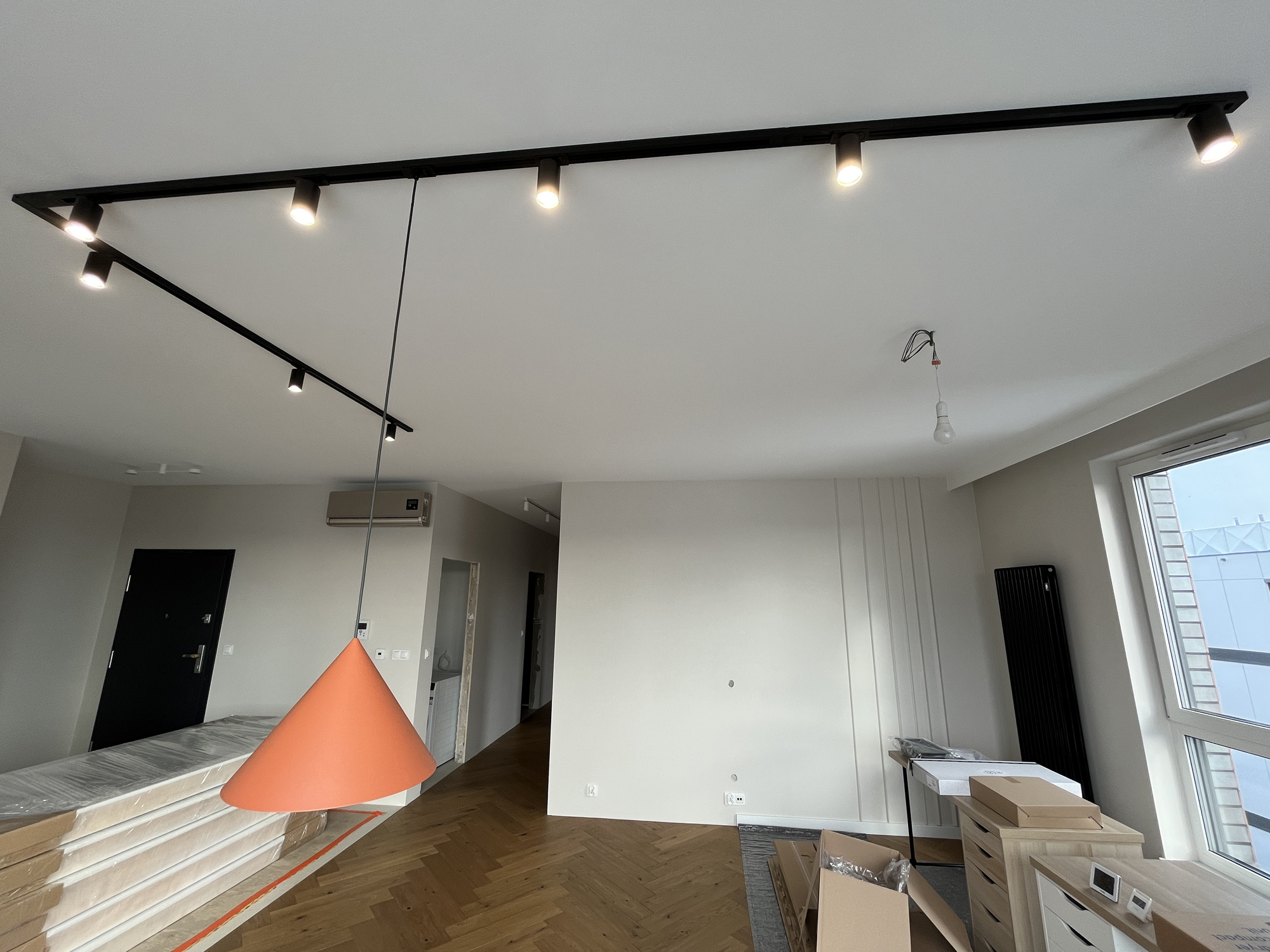 W zestawie z szyną znajduje się końcówka zasilająca, która ma długość 11 cm oraz zaślepka o długości 1 cm. Długość szyny podawana jest z uwzględnieniem końcówki zasilającej i zaślepki. Czy szynoprzewody 1-fazowe są dla Ciebie?Szynoprzewody 1-fazowe to popularne rozwiązanie systemowe, często stosowane do oświetlenia przestrzeni prywatnych. Są one stosunkowo tanie w porównaniu do szynoprzewodów 3-fazowych lub magnetycznych, a oferują taką samą możliwość konfiguracji. System ten pozwala na dokładne oświetlenie całego pomieszczenia przy podłączeniu zasilania w jednym miejscu. Jednak zakup szynoprzewodów może być problematyczny, dlatego przygotowaliśmy ten poradnik, który pomoże ustalić, czy to rozwiązanie jest odpowiednie i czy warto je zamówić. Przed przystąpieniem do doboru elementów i zakupów warto przeprowadzić mały research, aby ustalić, czy 1-fazowe będą odpowiednie dla naszych potrzeb. Najpierw warto zapoznać się z listą sześciu potencjalnych problemów związanych z szynoprzewodami 1-fazowymi, aby sprawdzić, czy żaden z nich nie stanowi poważnej przeszkody. Następnie rekomendujemy obejrzenie kilku aranżacji z wykorzystaniem szynoprzewodów. Polecamy również zapoznać się z naszym poradnikiem jak kupić szynoprzewody 1-fazowe. Czym są szynoprzewody 1-fazowe Maytoni?Szynoprzewody 1-fazowe Maytoni to najbardziej popularny i ceniony system szynowy w naszej ofercie. Marka oferuje szeroki wybór szyn w kolorach czarnym i białym, dostępnych zarówno w wersji natynkowej, jak i podtynkowej. Każda szyna jest wyposażona w końcówkę zasilającą oraz zaślepkę, przy zachowaniu konkurencyjnej ceny. Jednak główną zaletą Maytoni jest bogaty wybór reflektorów dostosowanych do szynoprzewodów. Oferowane są lampy z tradycyjnymi żarówkami oraz z modułem LED, dostępne w różnych kształtach i parametrach, co umożliwia tworzenie wyjątkowych aranżacji oświetleniowych. Dodatkowo, Maytoni wyróżnia się możliwością zastosowania łącznika środkowego zasilającego, co pozwala na doprowadzenie zasilania w dowolnym miejscu na linii szyny, a nie tylko na jej końcu. Główne zalety szynoprzewodów 1-fazowych Maytoni