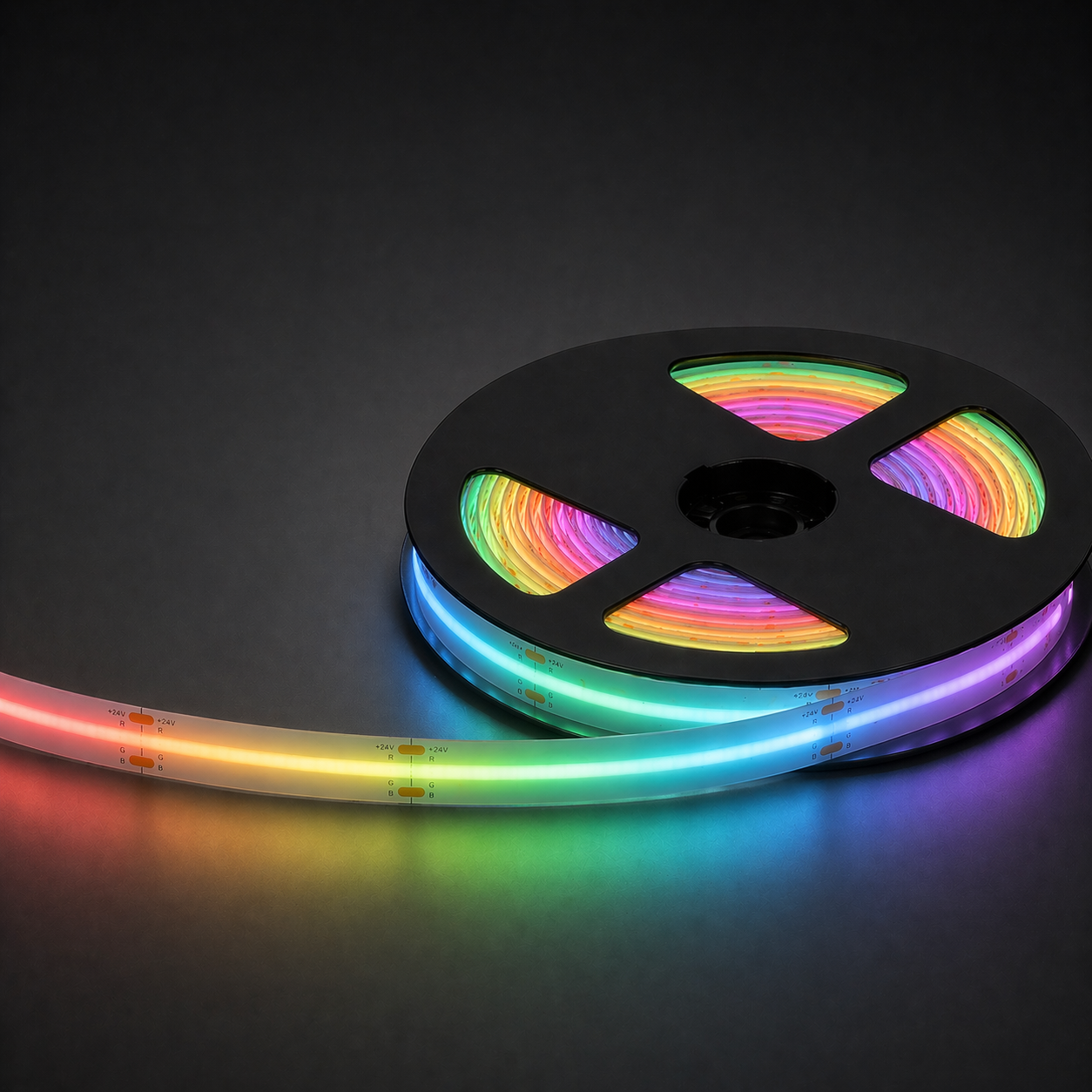 Taśma LED RGB CCT w technologii COB została przeze mnie osobiście przetestowana, co pokazuję na poniższym filmie. To bardzo dobre rozwiązanie, gdy zależy nam na uzyskaniu jednolitej, ciągłej linii światła. Ważne jest jednak odpowiednie dobranie profilu – najlepiej, żeby miał on co najmniej 1 cm głębokości, aby dobrze rozproszyć światło. Równie istotna jest szerokość – powinna być jak najbardziej zbliżona do szerokości taśmy, która w tym przypadku wynosi 12 mm. Co to jest taśma LED?Taśma LED to elastyczny pasek wyposażony w diody LED, które emitują światło. Jest wszechstronna i łatwa w montażu dzięki samoprzylepnej warstwie na spodzie, co pozwala na umieszczenie jej w różnych miejscach, w tym na zakrzywionych powierzchniach. Taśmy LED są używane do dekoracyjnego i funkcjonalnego oświetlenia w domach, biurach, pojazdach oraz w projektach komercyjnych i artystycznych. Jakie zastosowanie ma taśma LED RGB w domu lub mieszkaniu?Kolorowa taśma LED RGB (Red, Green, Blue) oferuje wiele wszechstronnych zastosowań, które mogą znacząco poprawić estetykę i funkcjonalność różnych przestrzeni. Oto kilka popularnych zastosowań taśmy LED RGB: 1. Dekoracyjne oświetlenie wnętrz Podświetlenie mebli i półek: Taśmy LED RGB mogą być używane do podświetlenia mebli, półek, wnęk czy szafek, dodając kolorowy akcent i nowoczesny wygląd do każdego pomieszczenia. 2. Oświetlenie nastrojowe Tworzenie atmosfery: Dzięki możliwości zmiany koloru, taśmy LED RGB są idealne do tworzenia nastrojowego oświetlenia. Mogą być używane w salonach, sypialniach czy pokojach dziecięcych, aby dopasować oświetlenie do okazji i nastroju. 3. Oświetlenie imprezowe Oświetlenie na przyjęcia i wydarzenia: Taśmy LED RGB są świetnym rozwiązaniem na imprezy i wydarzenia, umożliwiając dynamiczne zmiany kolorów i efektów świetlnych, co zwiększa atrakcyjność i energię każdej imprezy. 4. Oświetlenie ogrodowe i zewnętrzne Dekoracja tarasów i ogrodów: Taśmy LED RGB mogą być używane na zewnątrz, aby podkreślić elementy architektury ogrodowej, takie jak altany, pergole, ścieżki czy krawędzie tarasów, tworząc kolorowe i przyjemne otoczenie. 5. Oświetlenie akcentujące Podkreślenie architektonicznych detali: Można je używać do akcentowania architektonicznych detali wnętrz, takich jak kolumny, belki, sufity podwieszane czy schody, nadając im dodatkowego wymiaru i głębi. 6. Oświetlenie komputerowe i gamingowe Podświetlenie biurka i sprzętu: Taśmy LED RGB są popularne wśród graczy i entuzjastów komputerowych, gdzie używane są do podświetlenia biurek, monitorów i obudów komputerowych, tworząc immersyjne środowisko gamingowe. 7. Oświetlenie regałów i witryn Podświetlenie ekspozycji: W sklepach i domowych kolekcjach, taśmy LED RGB mogą podkreślać i eksponować produkty, książki, trofea czy dekoracje, przyciągając wzrok i dodając estetycznego uroku. 8. Oświetlenie telewizyjne Ambilight: Montaż taśmy LED RGB za telewizorem tworzy efekt ambilight, co poprawia wrażenia z oglądania, zmniejsza zmęczenie oczu i dodaje nowoczesnego wyglądu. Jak zamontować taśmę?Taśmę LED można zamontować zarówno natynkowo, jak i podtynkowo, w zależności od preferencji i stylu wnętrza.