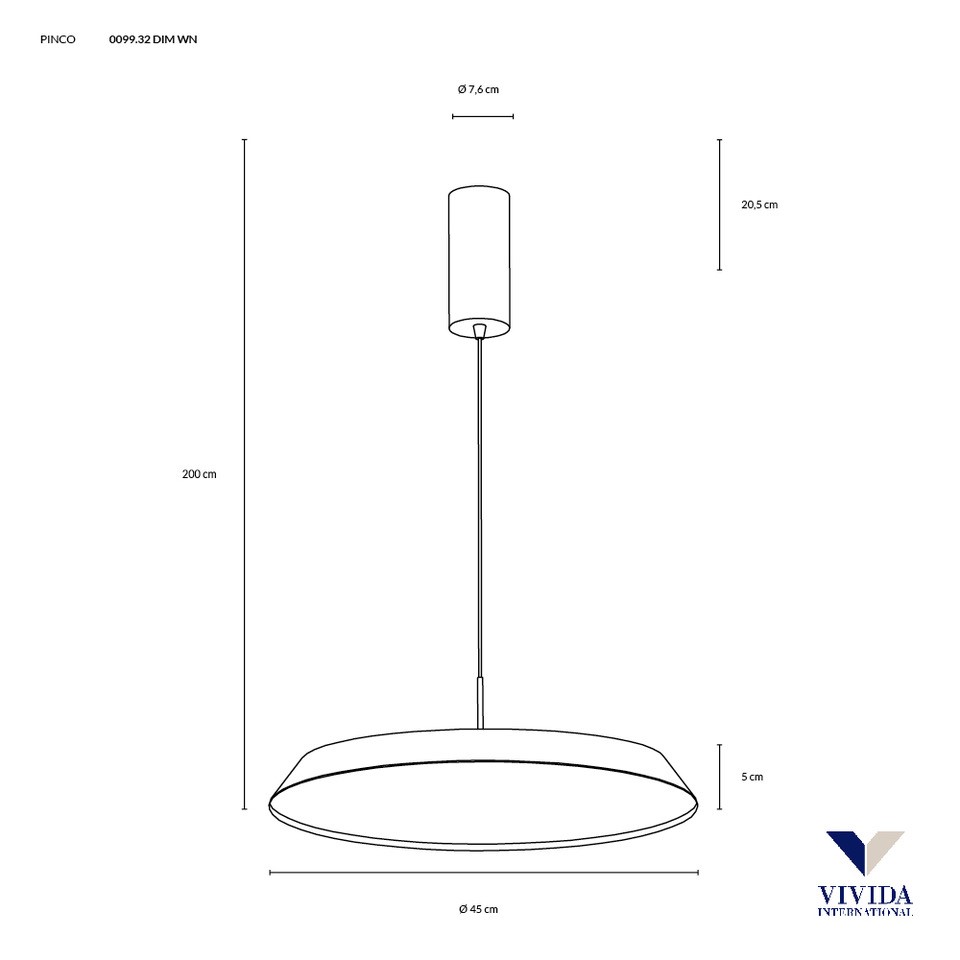 W kolorze brązu okrągła kopułowa lampa wisząca Vivida International 0096.32.BZ DIM WN Pinco LED 40W 3000K-4000K 45cm