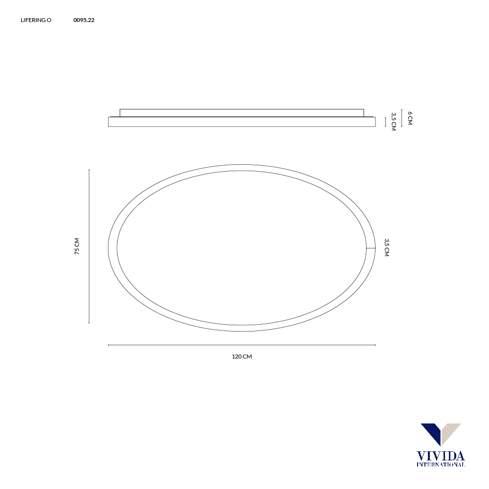 W kolorze brązu okrągły płaski ściemnialny plafon sufitowy Vivida International 0095.22.BZ DIM WN Lifering-O LED 80W 3000K 120cm