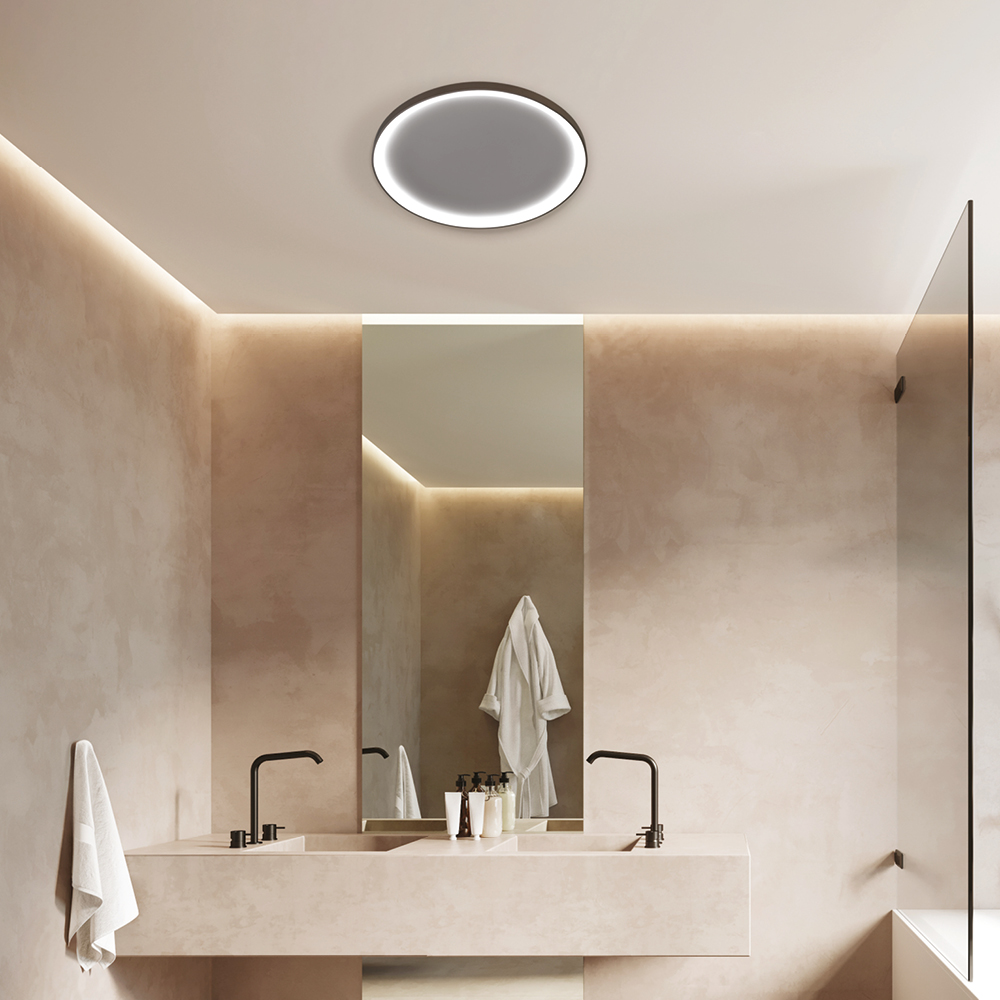W kolorze brązu okrągły wklęsły ledowy plafon sufitowy ściemnialny Vivida International 0098.22.BZ DIM WN Lifering-R LED 80W 3000K-4000K 78cm