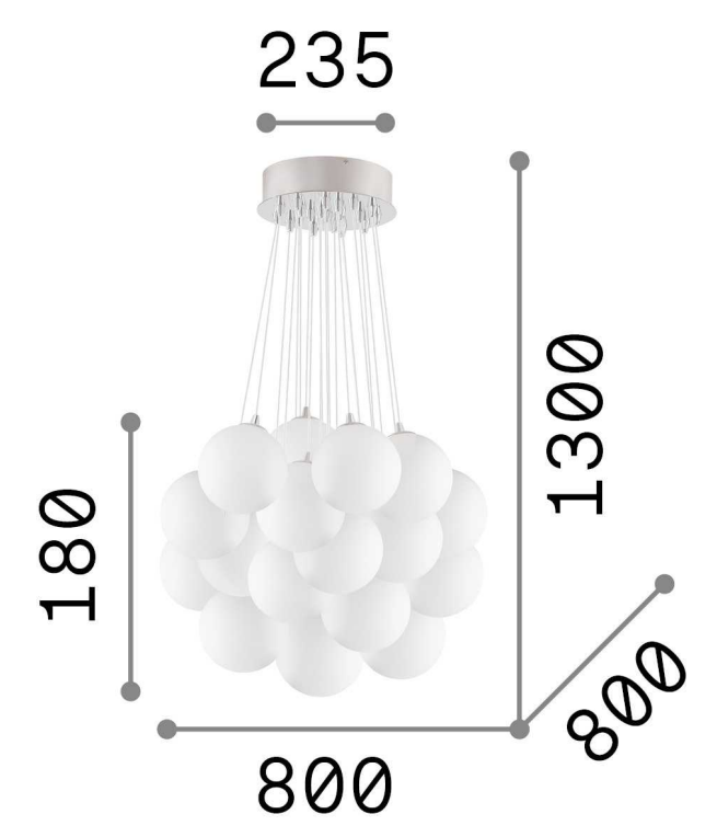 Włoska lampa wisząca białe szklane kule Ideal Lux 140230 Mapa Plus 22xE14 80cm