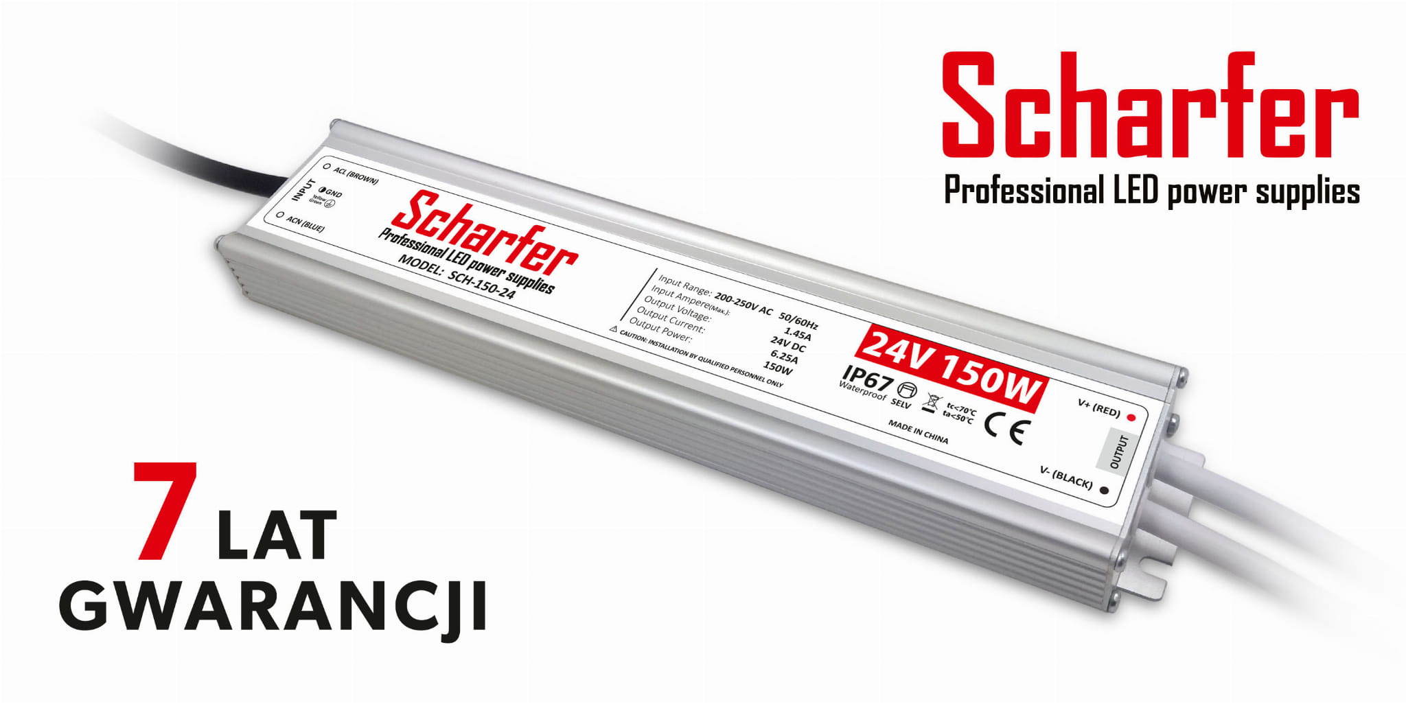 Zasilacz hermetyczny LED 150W 24V Scharfer SCH-150-24 IP67 279x57x25mm 7 lat gwarancji