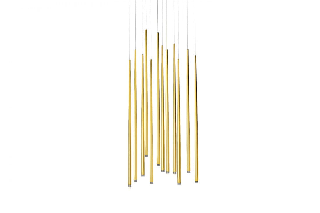 Złota lampa wisząca smukłe walce na okrągłej rozecie Azzardo AZ3420 Louise LED 36W 3000K 45cm